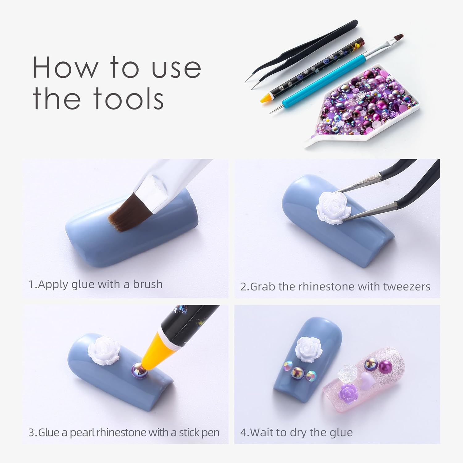- 💎Useful tools - These pearls rhinestones have a flat back, which is excellent for easy placement.and you can pick up any large or small pearls and rhinestones with the crayons we bring along. And use the brush to smooth out the glue, these tools will work very well.