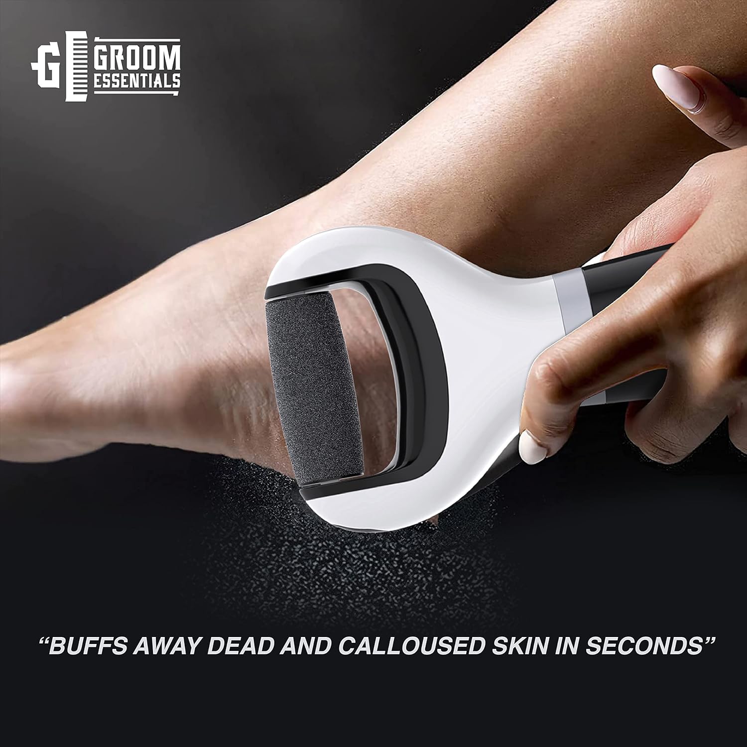 ChargeWorx Groom Essentials Cordless Callus Remover for Feet, Electric Pedicure Tool with Spinning Pumice Stone Head, Portable Foot Scrubber and Heel Scraper, Includes 2 Replacement Pumice Heads
