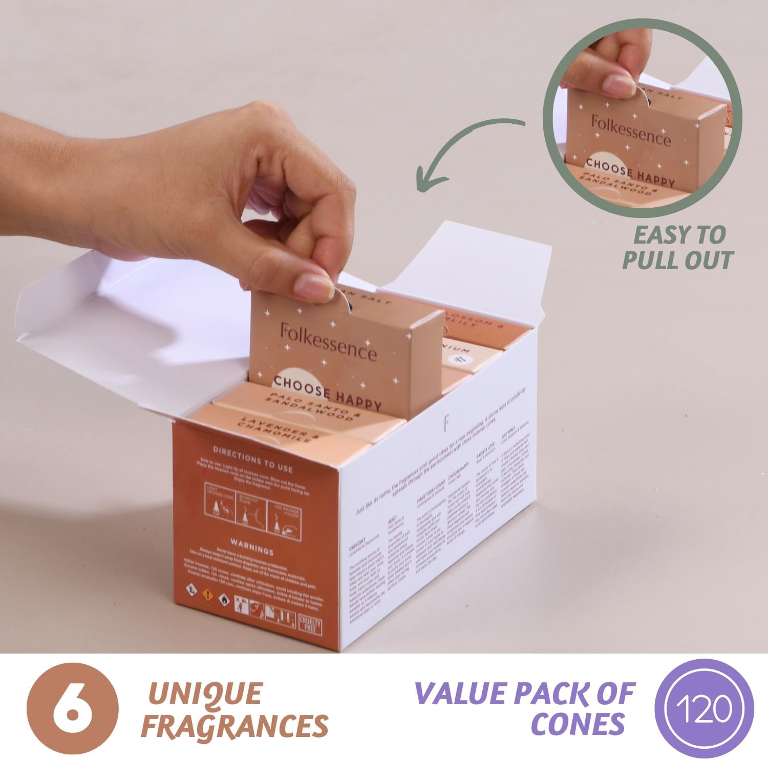 Folkulture Incense Cones Scented | Set of 6 (120 Cones) with Incense Cones Holder | Lavender Incense, Palo Santo, Sandalwood Inscents for Gifts for Her | Incense Cone Variety Pack