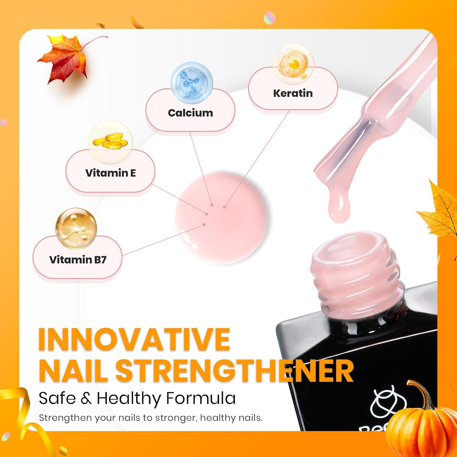 - Best Nail Strengtheners: While providing sufficient hardness to the nails, Our Color Base gel polish also provides hydrolyzed wheat protein and calcium pantothenate to repair damaged nails.It added nutrients: HYDROLYZED WHEAT PROTEIN and PANTOTHENATE CALCIUM.Which is a vitamin B group substance, which is a variety of metabolic links, including carbohydrates, proteins, fats and functional vitamins. It is a component part of coenzyme A necessary for normal maintenance.