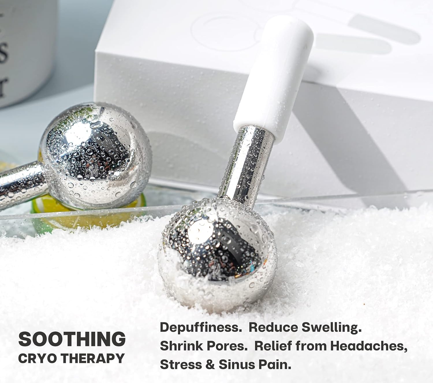 - 【Ice Globes for Facial Cryo Therapy】Store the sticks in the fridge and grab them out in the morning for a cryo massage, which gives aids in puffiness and dark circles, as well as provides instant relief from headaches, muscle tension and irritation.