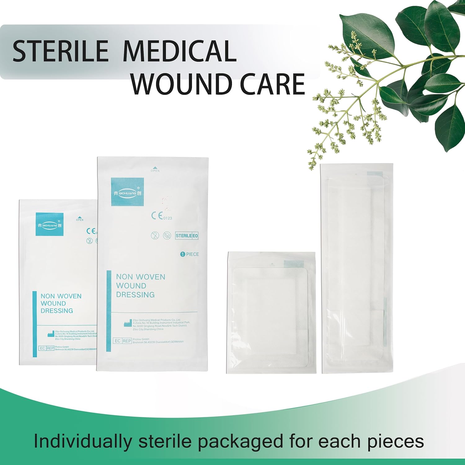 4X10 Inches Large Sterile Adhesive Island Wound Dressing Bandages - Non Woven Cover with Bordered Gauze Pads,25 Individually Pack, High Absorbent, Medical Grade by QICHUANG(4X10INCHES-C25)