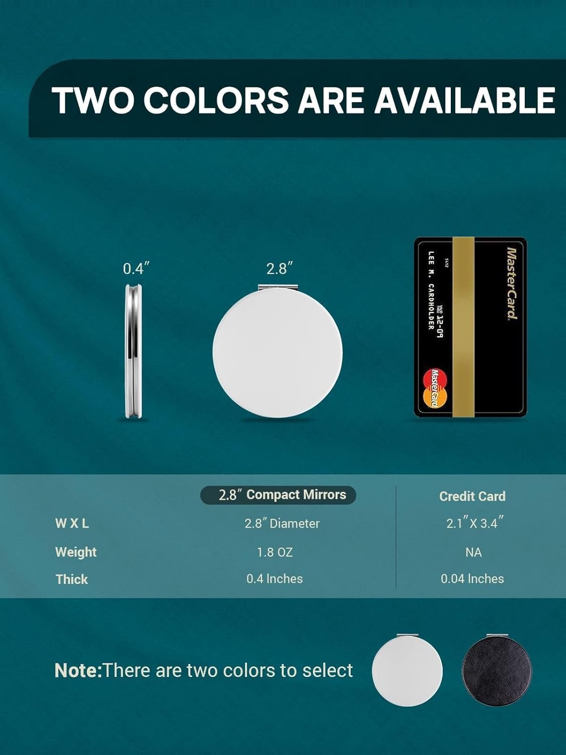 - COMPACT MIRROR: 2.8 inches diameter round small portable mirror is excellent size for purse and women's pockets. Metal frame(covered by PU) weight 1.8 OZ; it feels a bit heavy in hand, not like a cheaply made one