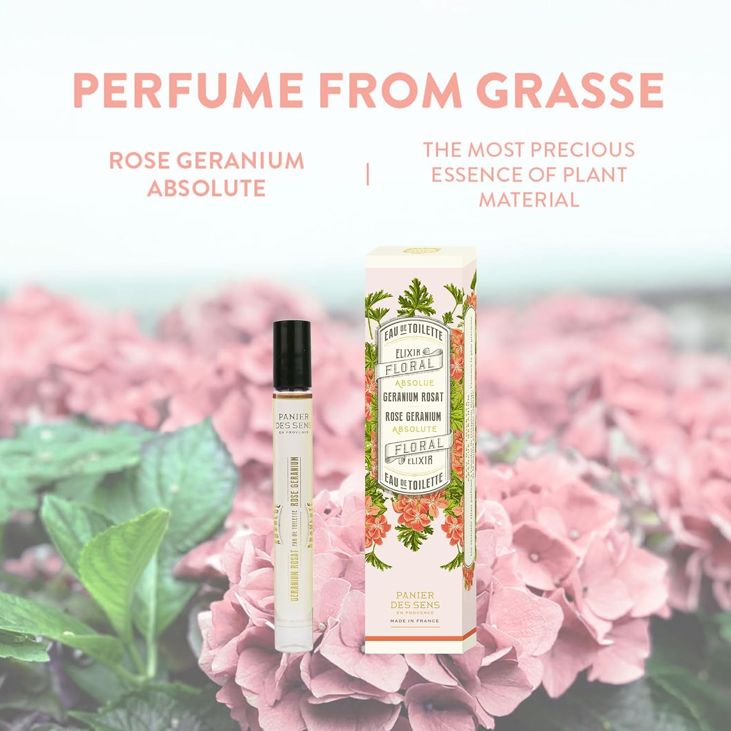 Panier des Sens – Geranium Rosat Roll-on Eau de Toilette 0.3 Floz – Floral & Herbal Fragrance - Mini Perfume for Women - Parfum Crafted in Grasse, France - Daily Use - Light Travel Perfume
