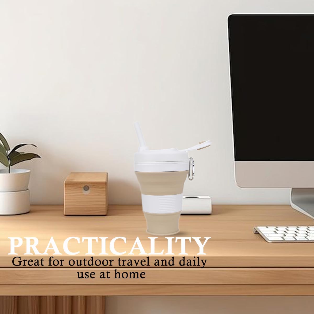 Silicone Coffee Cup with Straw lid Collapsible Cups for Traveling 20oz Lightweight Folding Water Mug for Picnic Hicking Camping Climbing