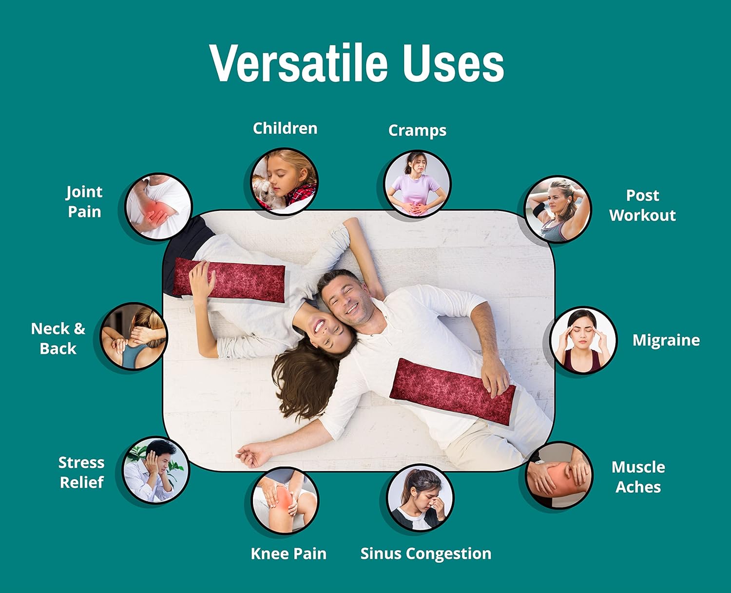 Microwavable Corn Filled Heating Pad and Cold Pack/Washable 100% Cotton Cover (Etched - Burgundy, 5.25in W x 17.25in L)