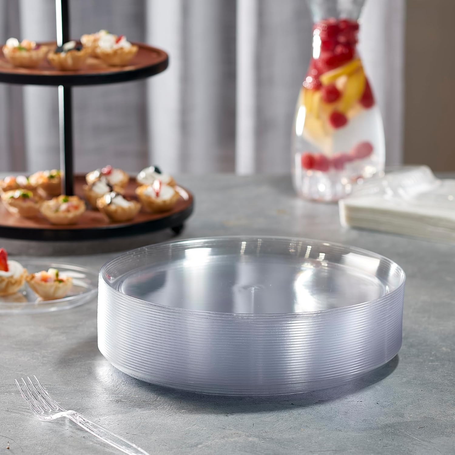 PLASTICPRO Plastic Party Plates Edge Collection Premium heavyweight Elegant Disposable Tableware Dishes (Clear, 10.6'' INCH PLATES)