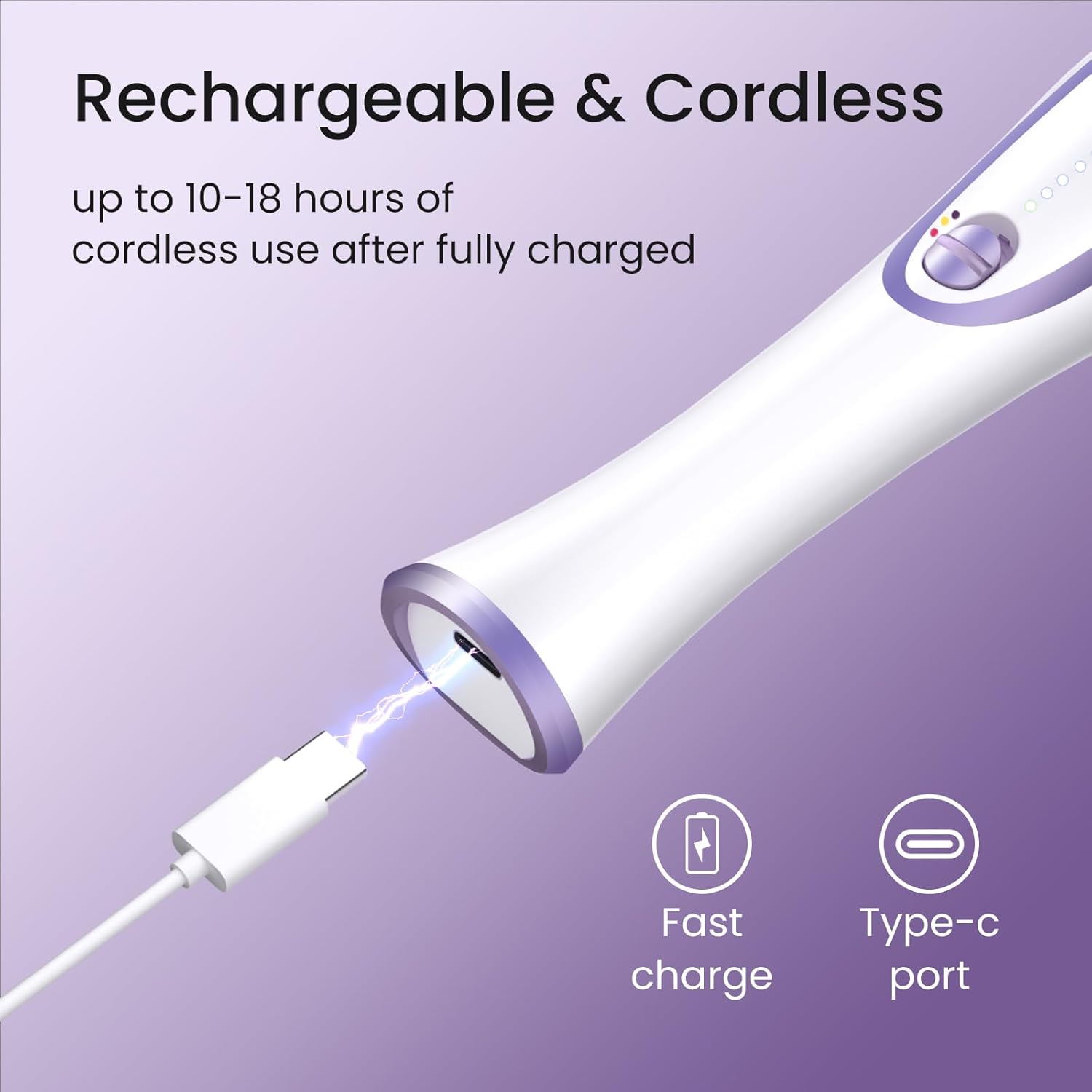 - Rechargeable, Cordless and Use up to 10-18 hours:New Version cordless nail drill machine- the built-in lithium battery delivers up to 10 -18 hours of cordless use when fully charged. The LED light provides a highlighted view during use, achieving a precise manicure and pedicure. Have salon-quality manicures and pedicures at anytime anywhere