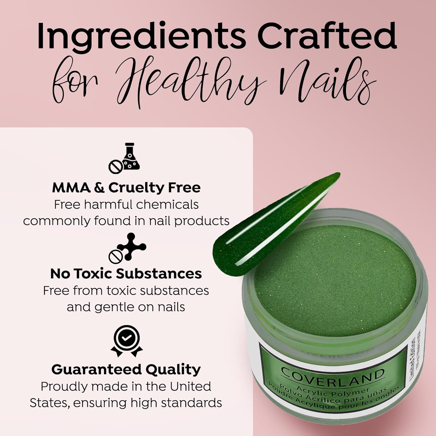 - βοΈππππ ππππππππ πππππ: The flexibility and adhesion properties of Coverland colored acrylic nail powder make it easy to shape nails with precision, and offers nice control for professionals who prefer to work with a polymerization rate of moderate to fast.
