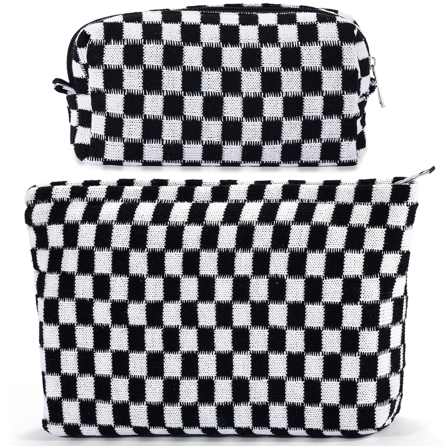 - LARGE CAPACITY AND PREMIUM MATERIAL: The cute makeup bag measure 10.6×7 inches and 7×4 inches, easy to carry. The checkered makeup bag is made of soft knitted fabric, easy to clean. The smaller ones can be used as pencil case or pencil pouch. This makeup travel bag can also hold small items such as makeup, skincare products, lipstick, eye shadow, eyebrow brush, etc. Makeup storage bag for women toiletries