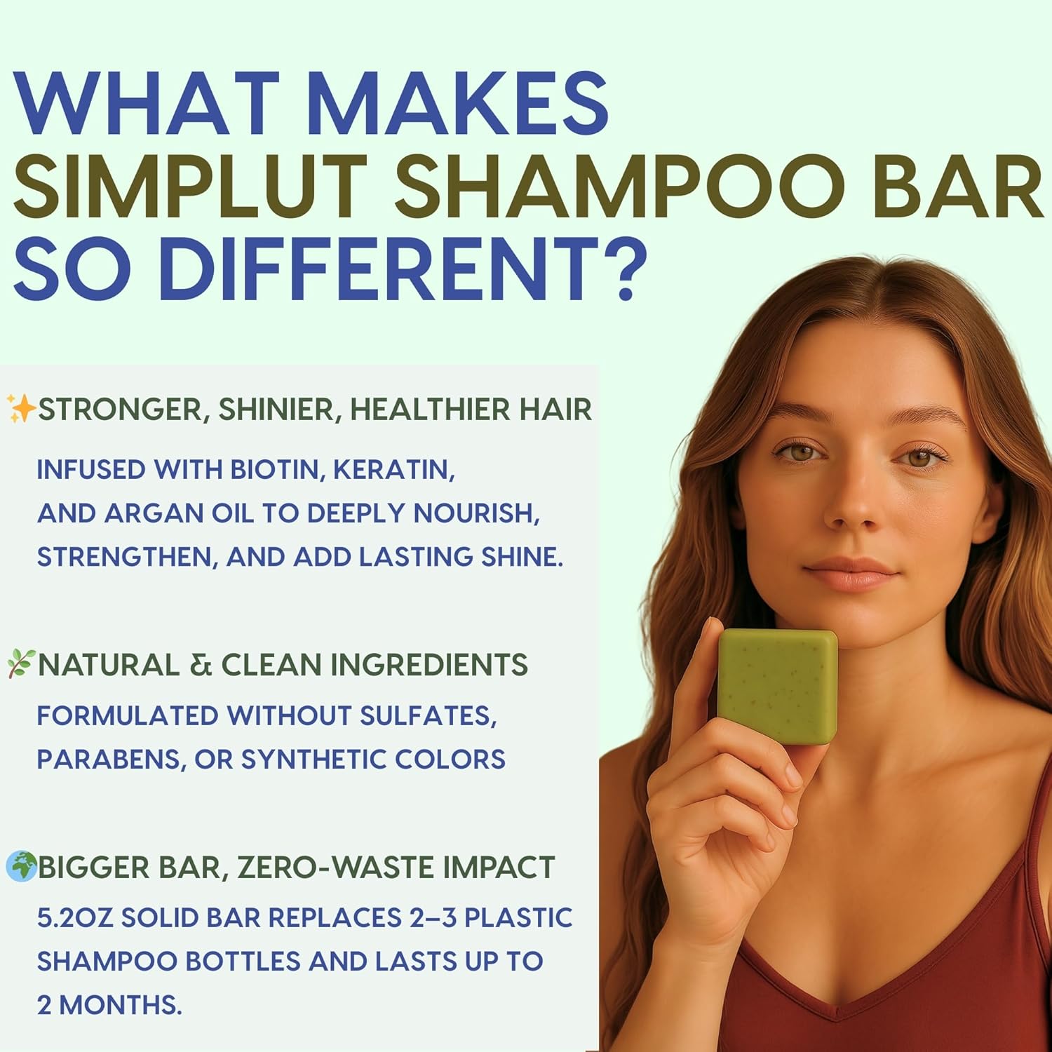- 100% SULFATE & PARABEN-FREE – PERFECT FOR SENSITIVE SCALPS : SIMPLUT’s solid shampoo bar is dermatologically gentle, formulated without harsh sulfates, parabens, or artificial colors. Perfect for men and women with sensitive or irritated scalps who demand safe, clean ingredients and cruelty-free haircare.