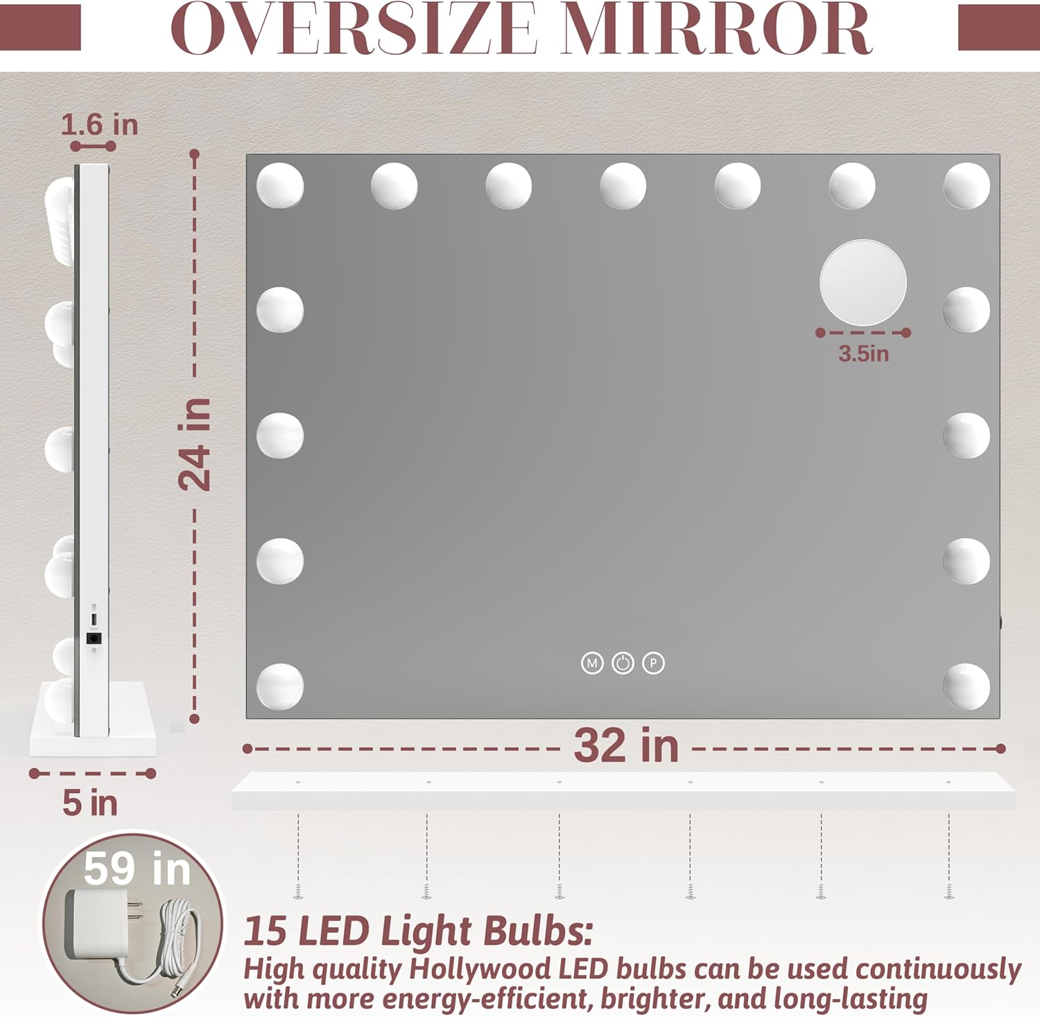 - 【UPGRADED EXTRA LARGE SIZE】 Get ready to elevate your makeup game with our 32" x 24" Hollywood vanity mirror. This large size ensures that you can see every angle with ease. Say goodbye to cramped, uncomfortable spaces and hello to the luxury of having plenty of room to create the perfect look.