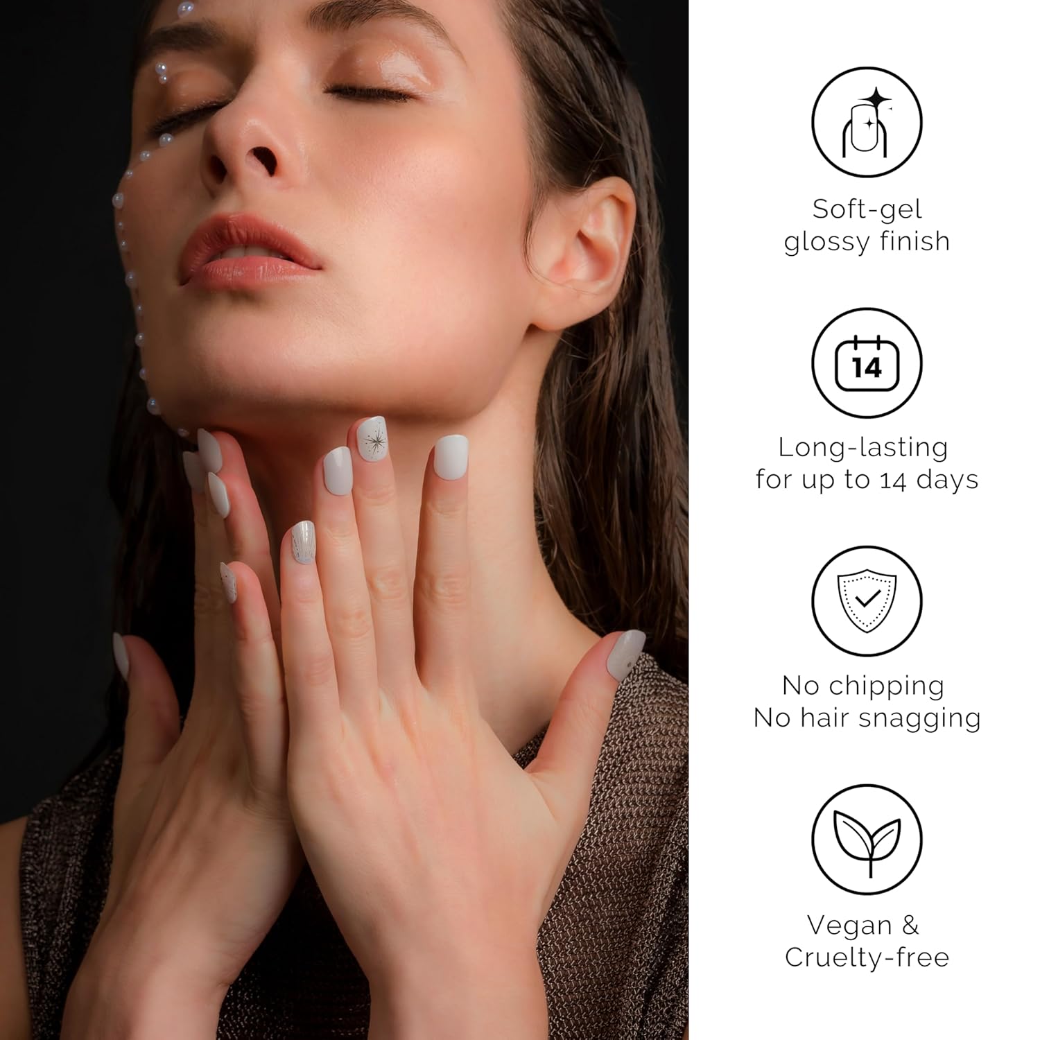 NAILOG Semi Cured Gel Nail Strips 34 pcs| Buy 2 Get 1 UV Lamp | Long Lasting Nail Polish Sticker Wraps with Glossy Gel Finish, Astria