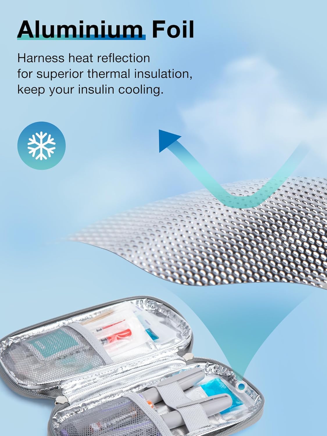 - Keep Insulin Cooling - Insulin Case Crafted from high-quality aluminum foil, this insulin cooler travel case tsa approved keeps your insulin and insulin pen at the optimal temperature for 4-6 hours. Say goodbye to concerns about outside temperature fluctuations affecting your medication's effectiveness. Perfect for diabetic insulin cooler needs.