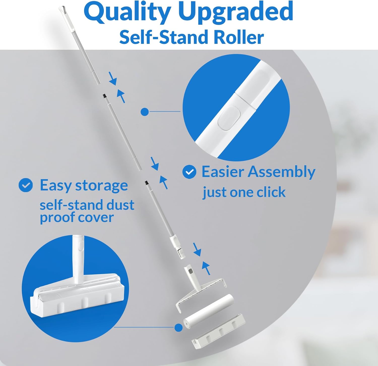 - 【Easy to Assemble and Store】The upgraded, more sturdy design of the big lint roller handle makes assembly a breeze, and it can be conveniently hung or stand with the dust cover during storage, reducing space consumption in tight spots like behind doors, corners, and more.