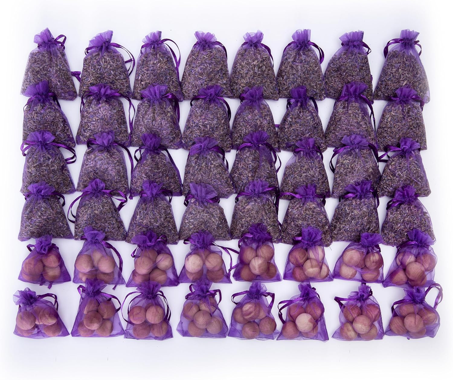 - Great Value: 32 Fragrance Sachets with dried lavender flower buds, and 16 cedar sachets with American red cedar balls. No any artificial ingredients or any other chemical substances.