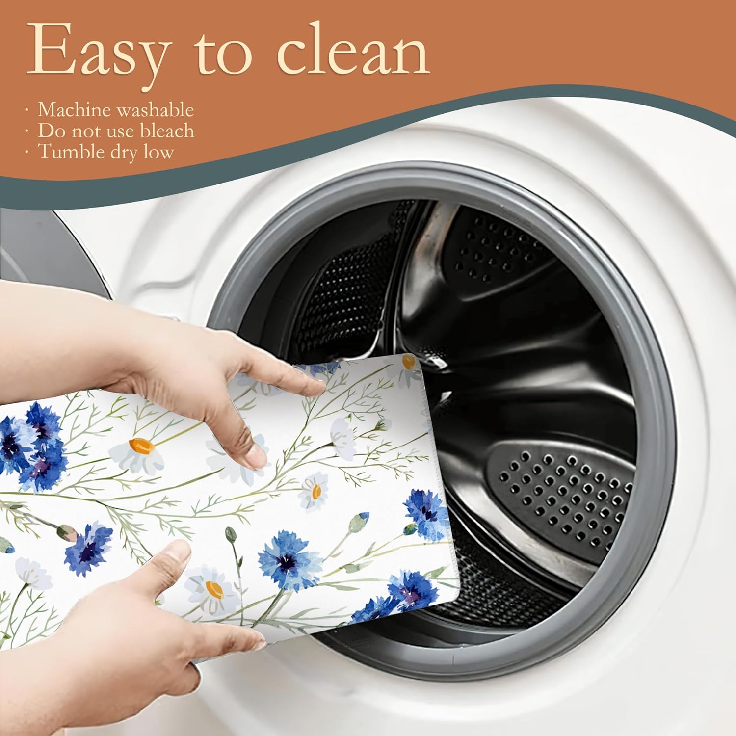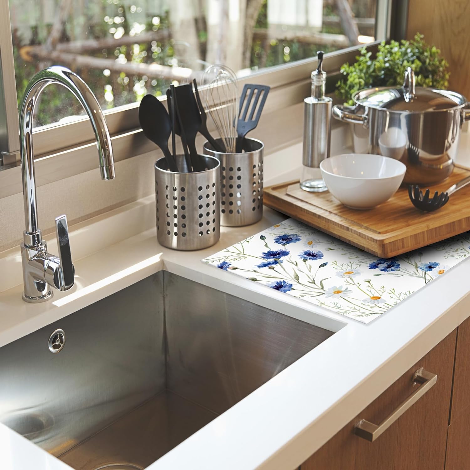 Wildflowers Dish Drying Mat,Watercolor Poppy Cornflower Drying Rack Pad Countertop Dishes Ultra Absorbent Microfiber Kitchen Counter Mat for Coffee Countertop Decor 18x24 Inch