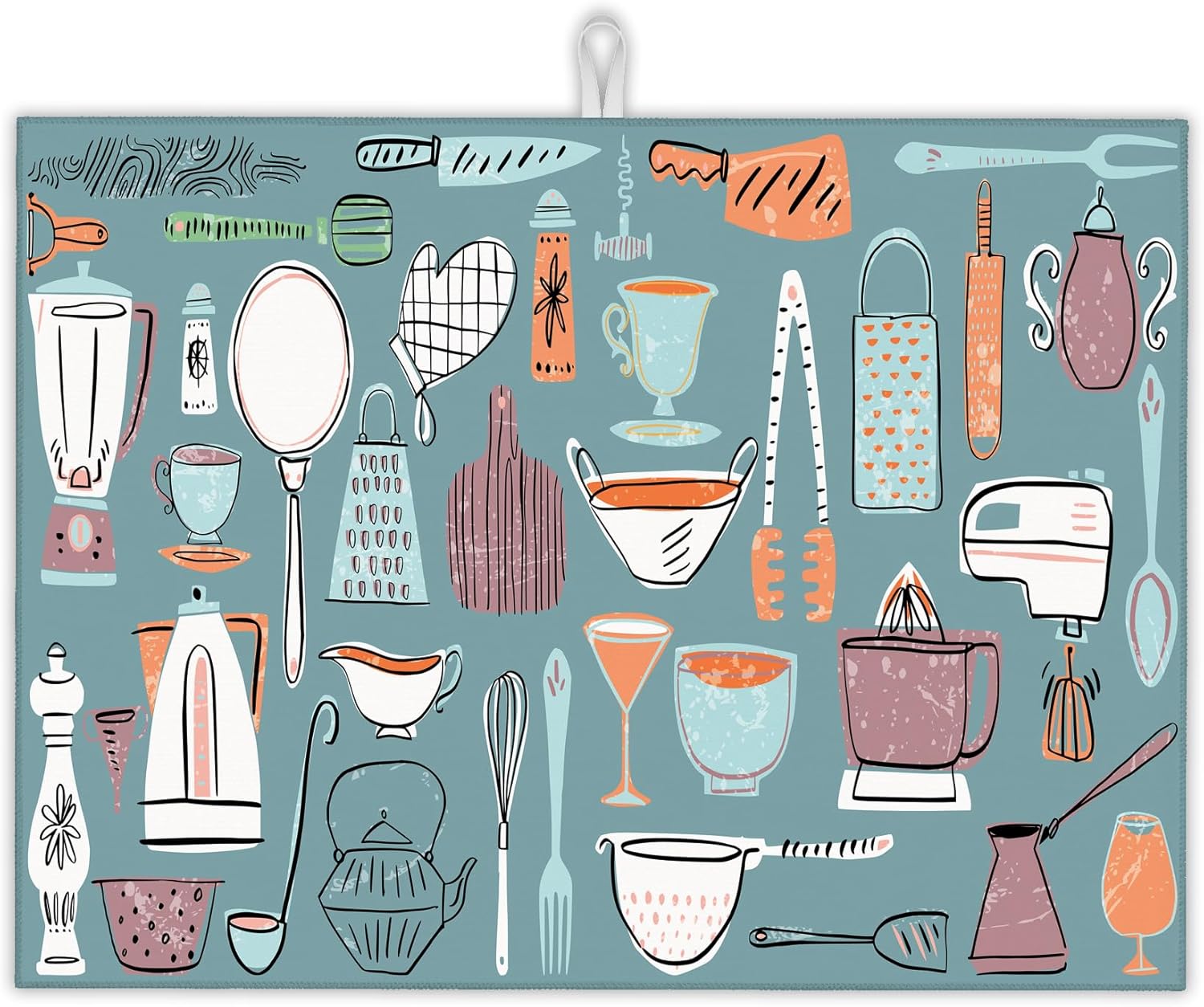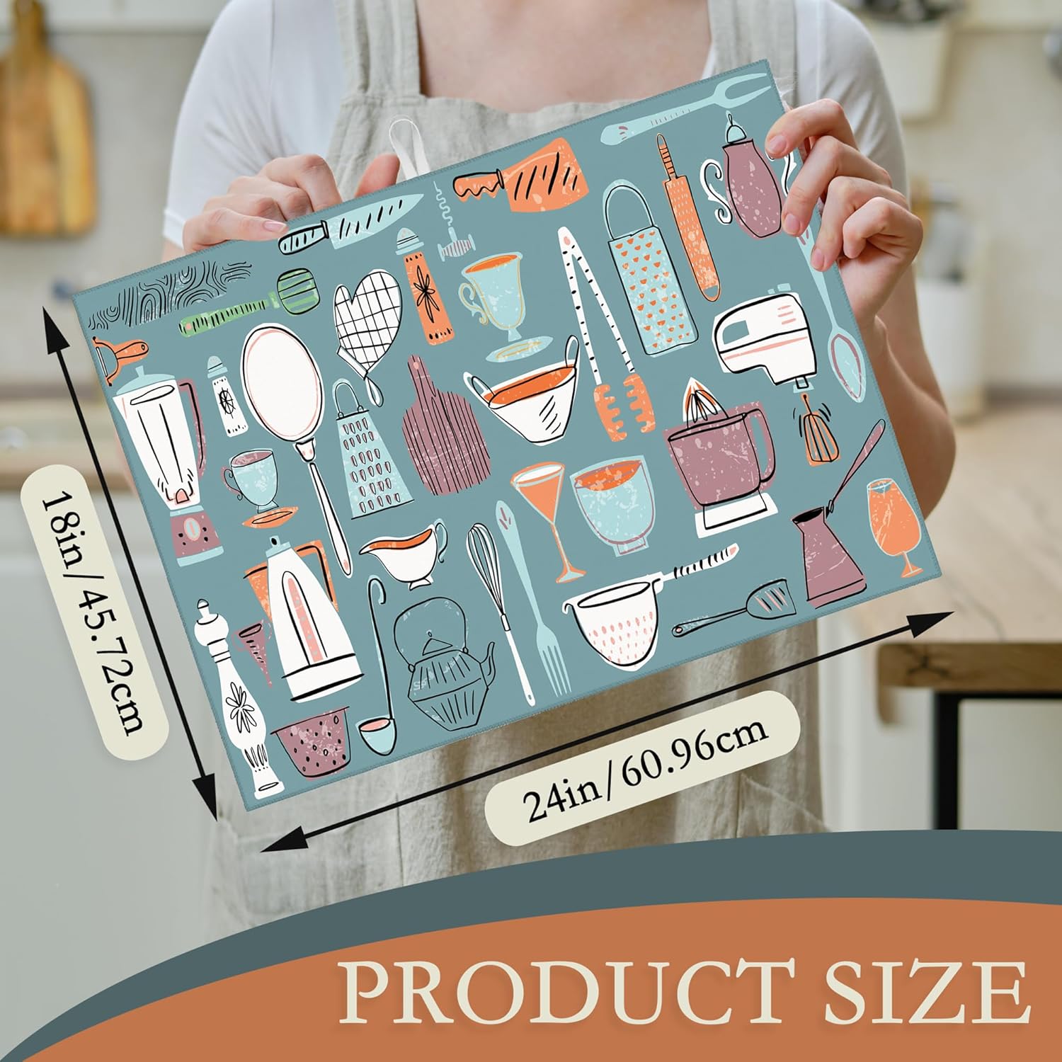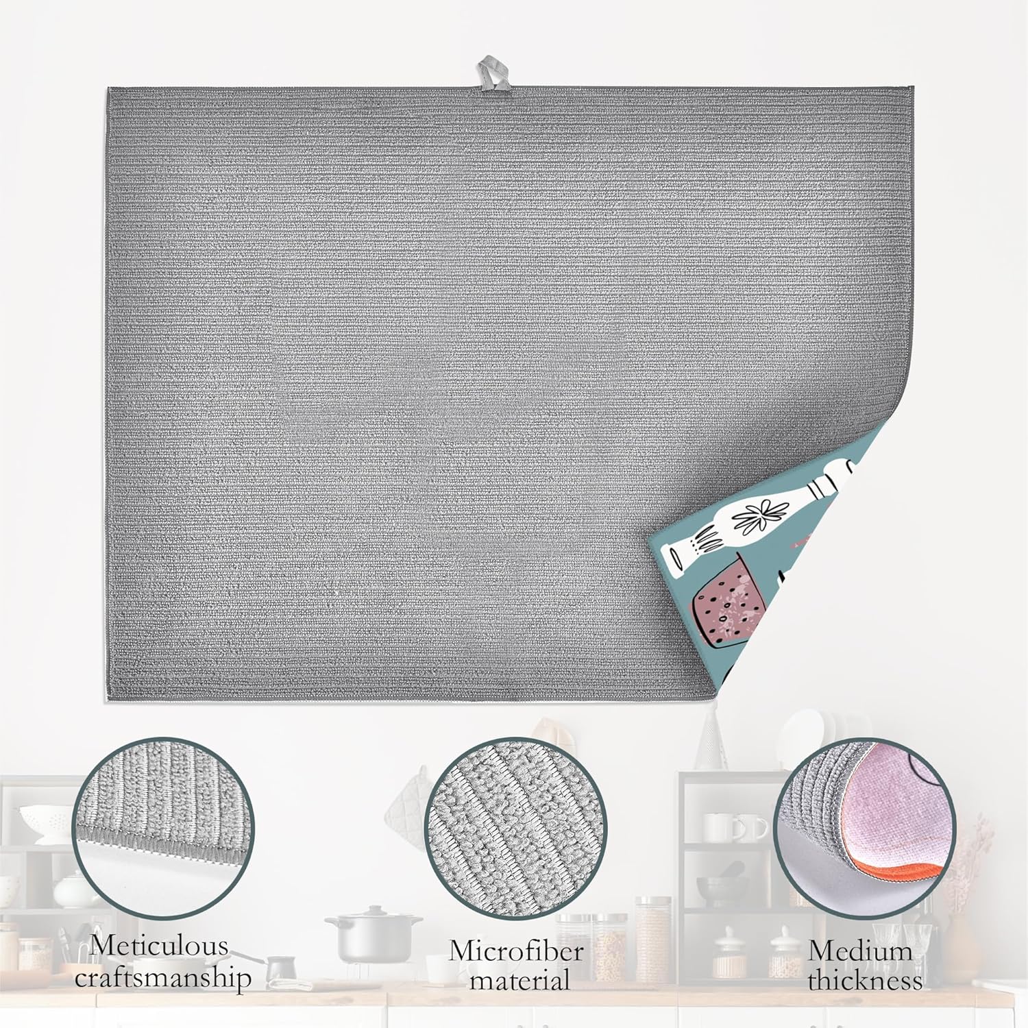Kitchenware Set Dish Drying Mats 18x24 Inch, Dish Pad Drying Rack Mat for Kitchen Counter Ultra Absorbent Microfiber Dishware Coffee Maker Bar Countertop Decor