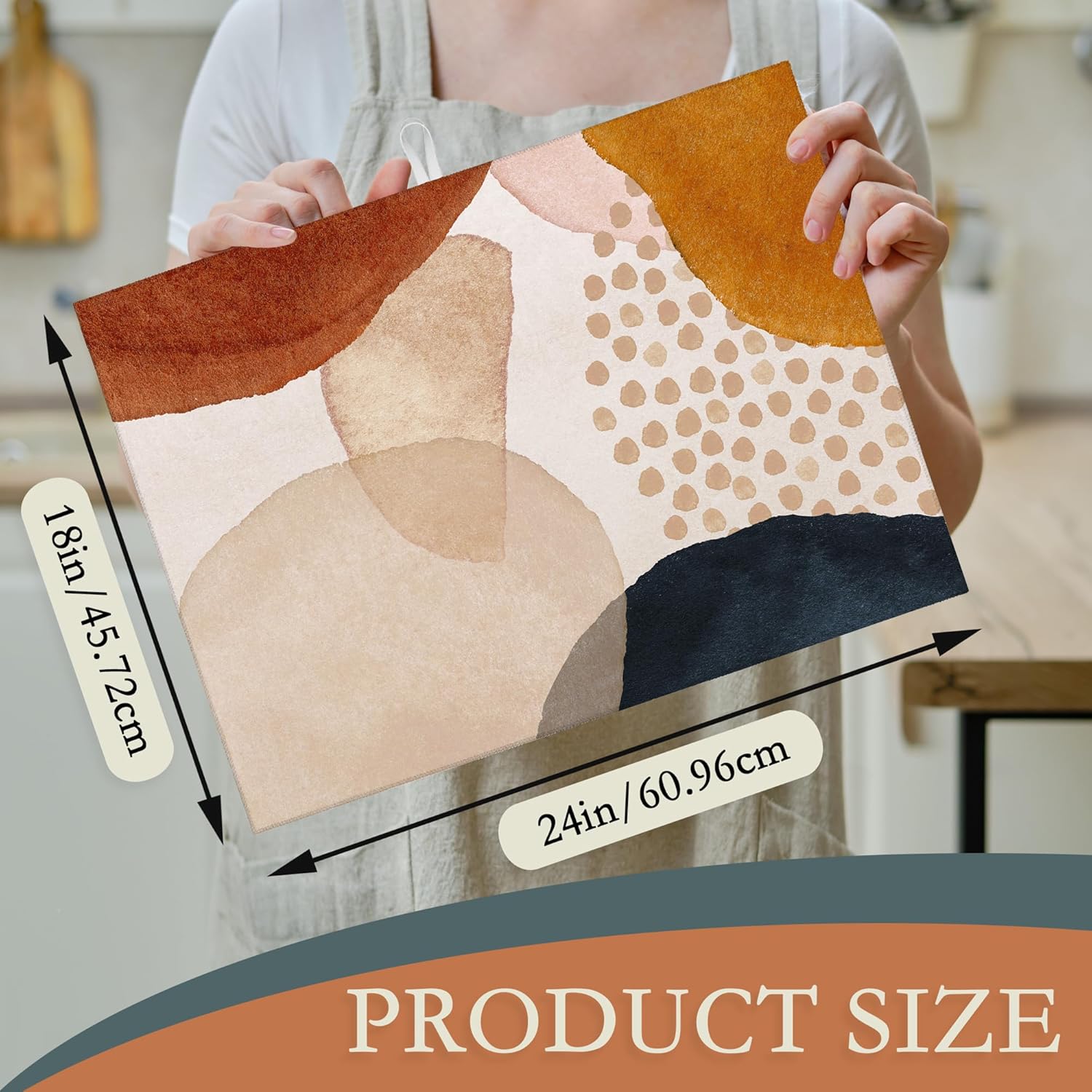 Boho Abstract Dish Drying Mats 18x24 Inch,Geometric Modern Art Dish Pad Drying Rack Mat for Kitchen Counter Ultra Absorbent Microfiber Dishware Coffee Maker Bar Countertop Decor