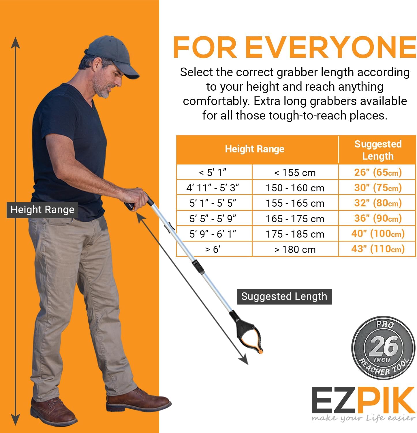 EZPIK® Grip Aid Tool Grabber Reacher + Magnets - Grabbers for Seniors, Trash Picker Upper Grabber - Trash Grabber Tool- Reacher Grabber Pickup Tool (Silver, 26" (Pack of 2))