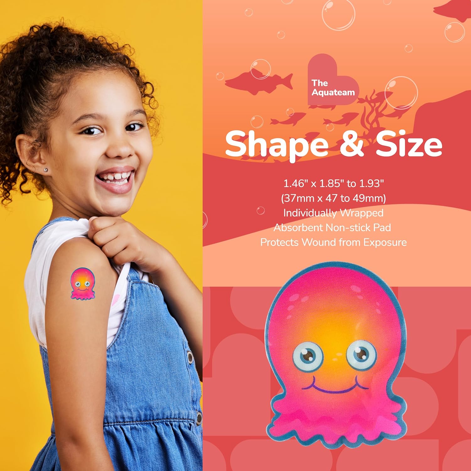 - 50 SEA CREATURE KIDS BANDAGES: Fun sea creature-shaped adhesive bandages plastic box helps protect cuts, scrapes, and minor wounds while making healing less stressful for children; bandages come in 4 assorted styles
