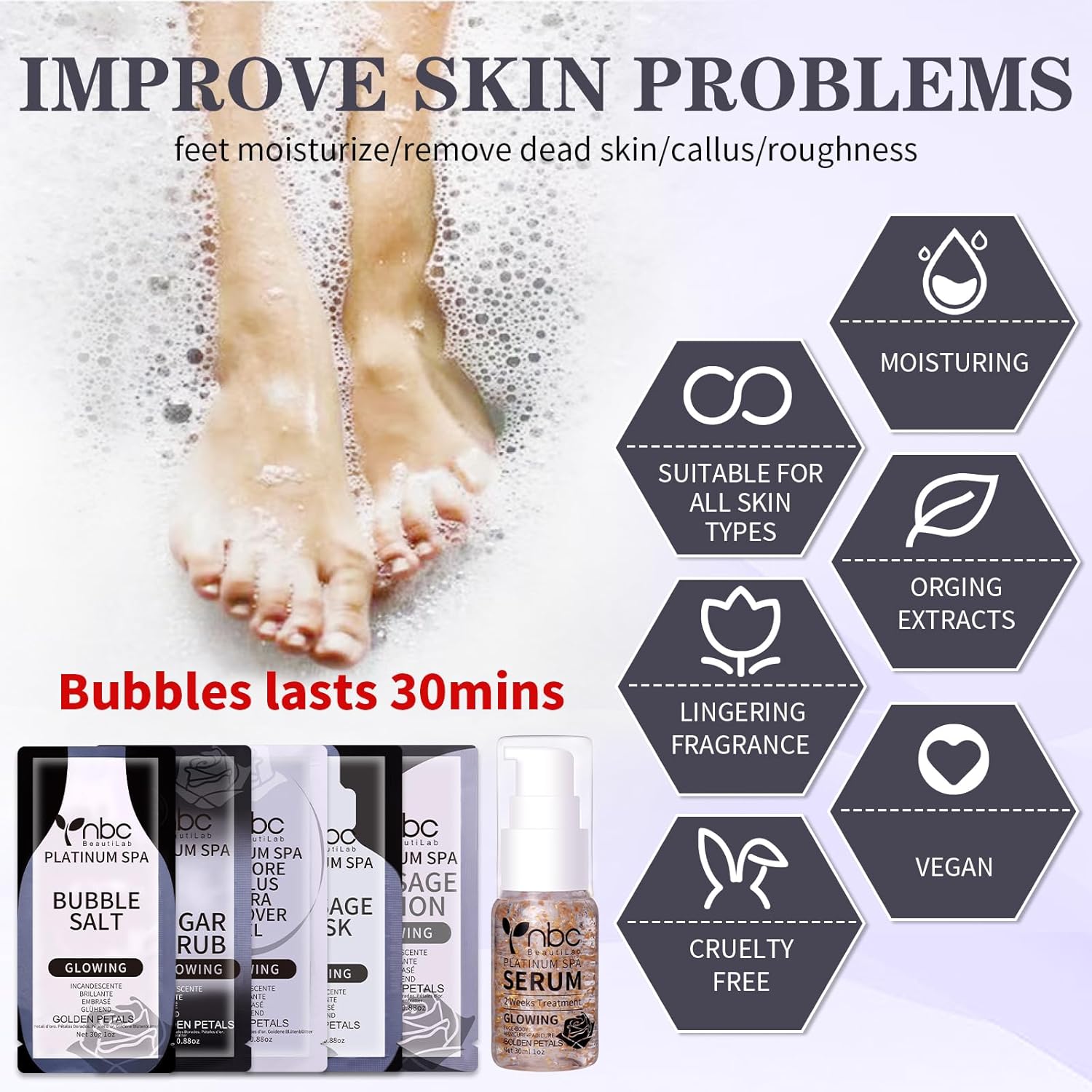 - 👣[Upgraded Foot Spa] This 6 in 1 newly upgraded bubble foot soak is guaranteed to effectively remove your stubborn calluses, and relieve your feet of fatigue and pain. It can help soothe itchy feet and remove odors. Using this pedicure kit is guaranteed to restore your feet to feeling smooth and moisturized as soon as possible.