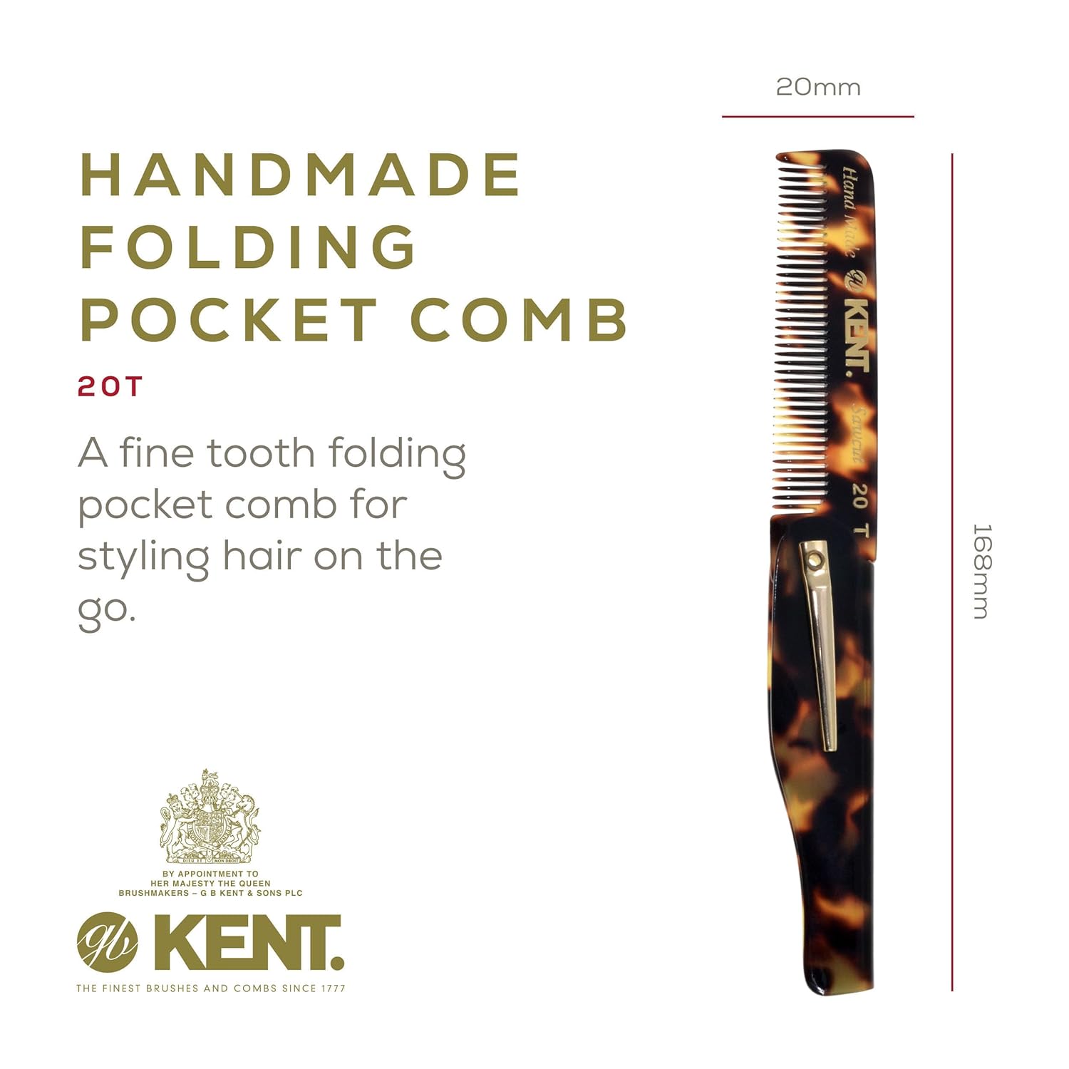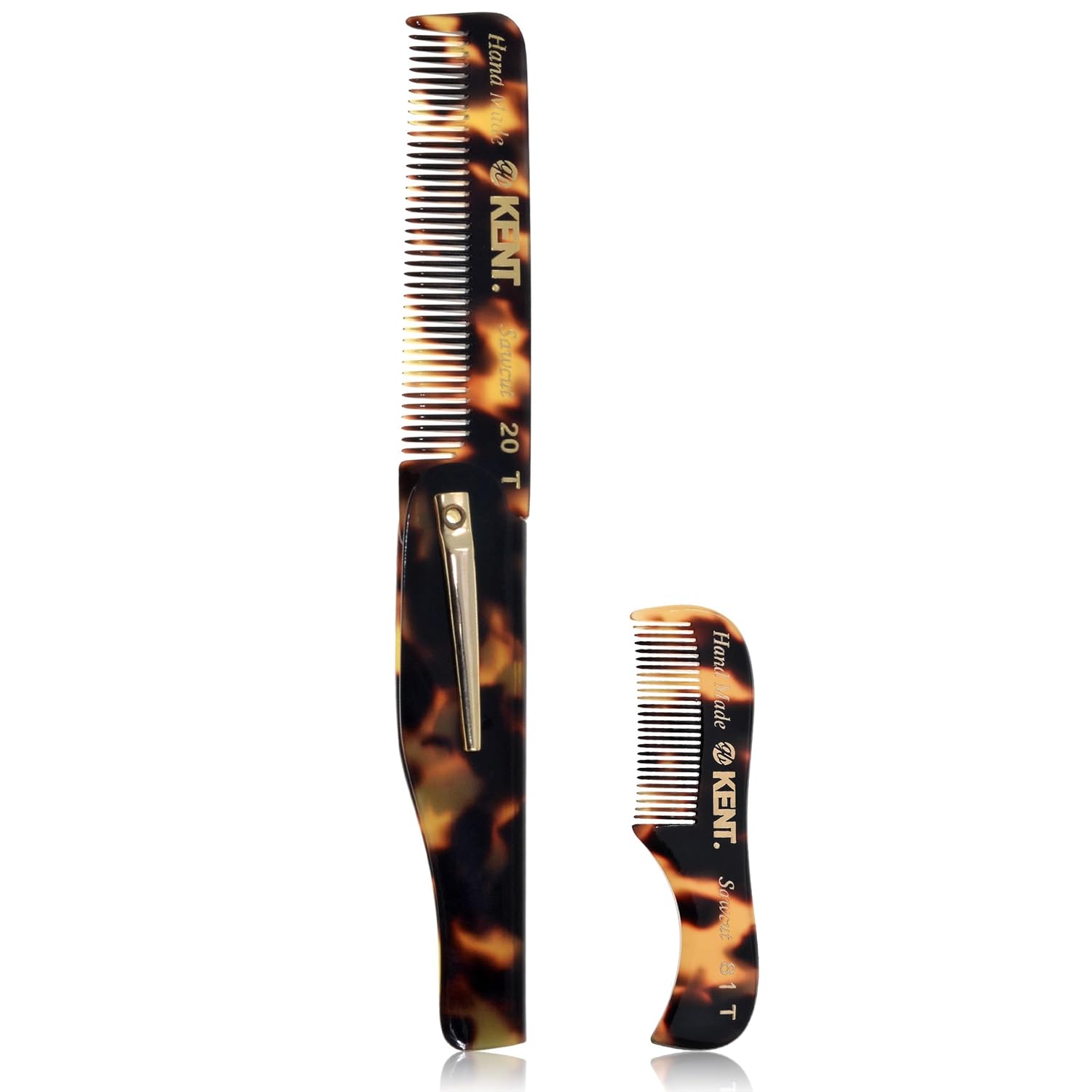 Kent 20T Handmade Fine Tooth Folding Comb with Hand Made Pocket Comb for Beard and Mustache - Fine Tooth Combs - Beard Straightener for Men and Beard Grooming Kit
