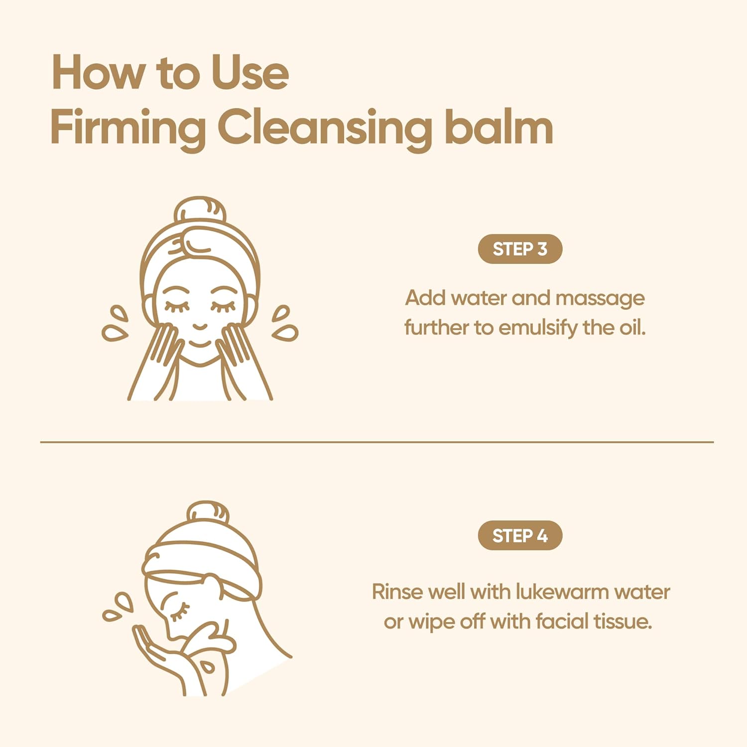 - How to Use📝 Scoop the appropriate amount using the spatula included. Gently massage in a circular motion onto dry skin using your fingertips to remove makeup and residue. Add water and massage further to emulsify the oil. Rinse well with lukewarm water.
