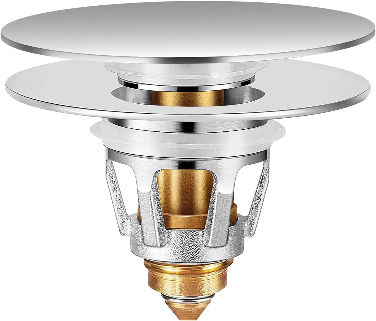 - [ Universal Size ] This bathroom pop-up filter basket drainer is a universal edition stainless steel product with bullet core, can be used for the different types of basin drain. The inner diameter of sink stopper strainer is 1.04’’. Suitable for drain holes with an inner diameter of 1.04-1.97 inch.