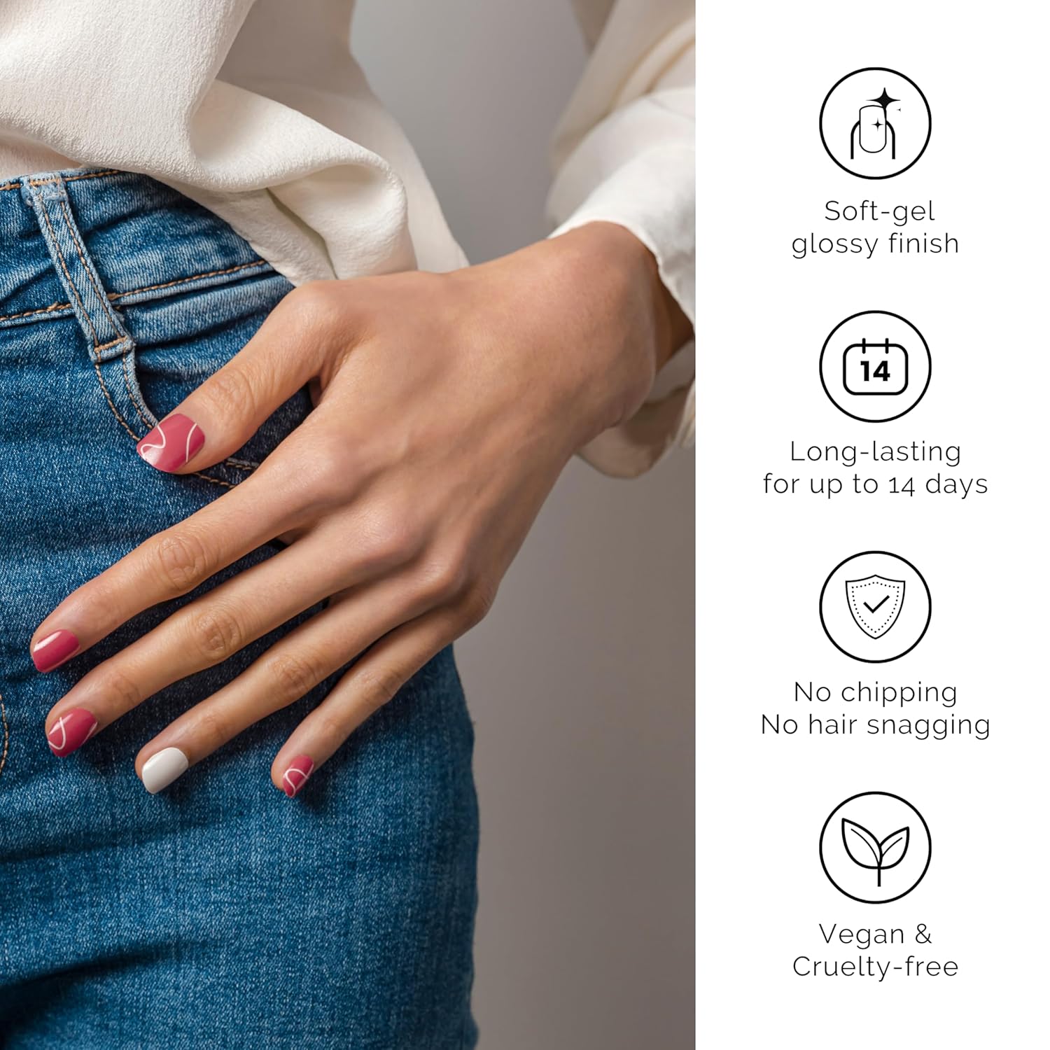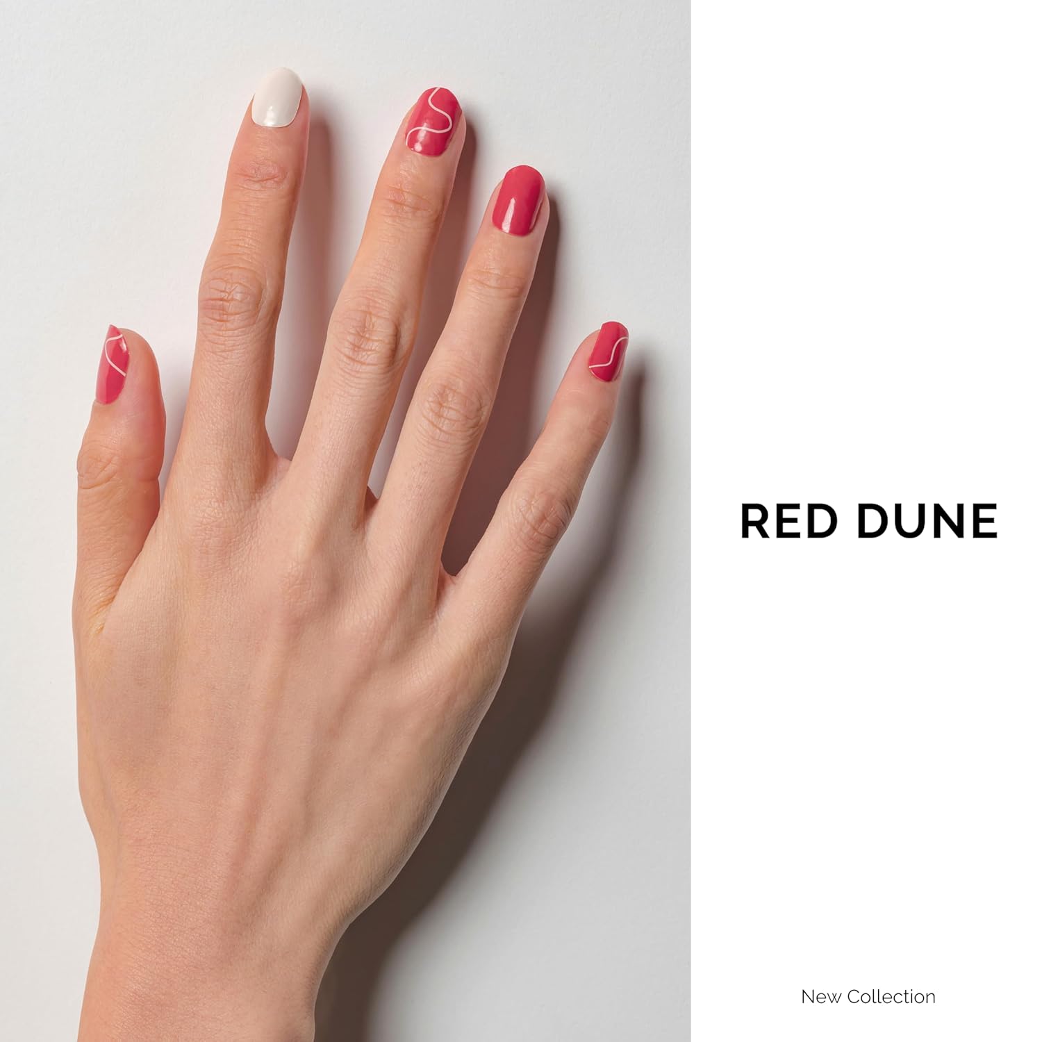 Nailog Semi Cured Gel Nail Strips 34 pcs | Buy 2 Get 1 UV Lamp | Long Lasting Nail Polish Sticker Wraps with Glossy Gel Finish (Red Dune)