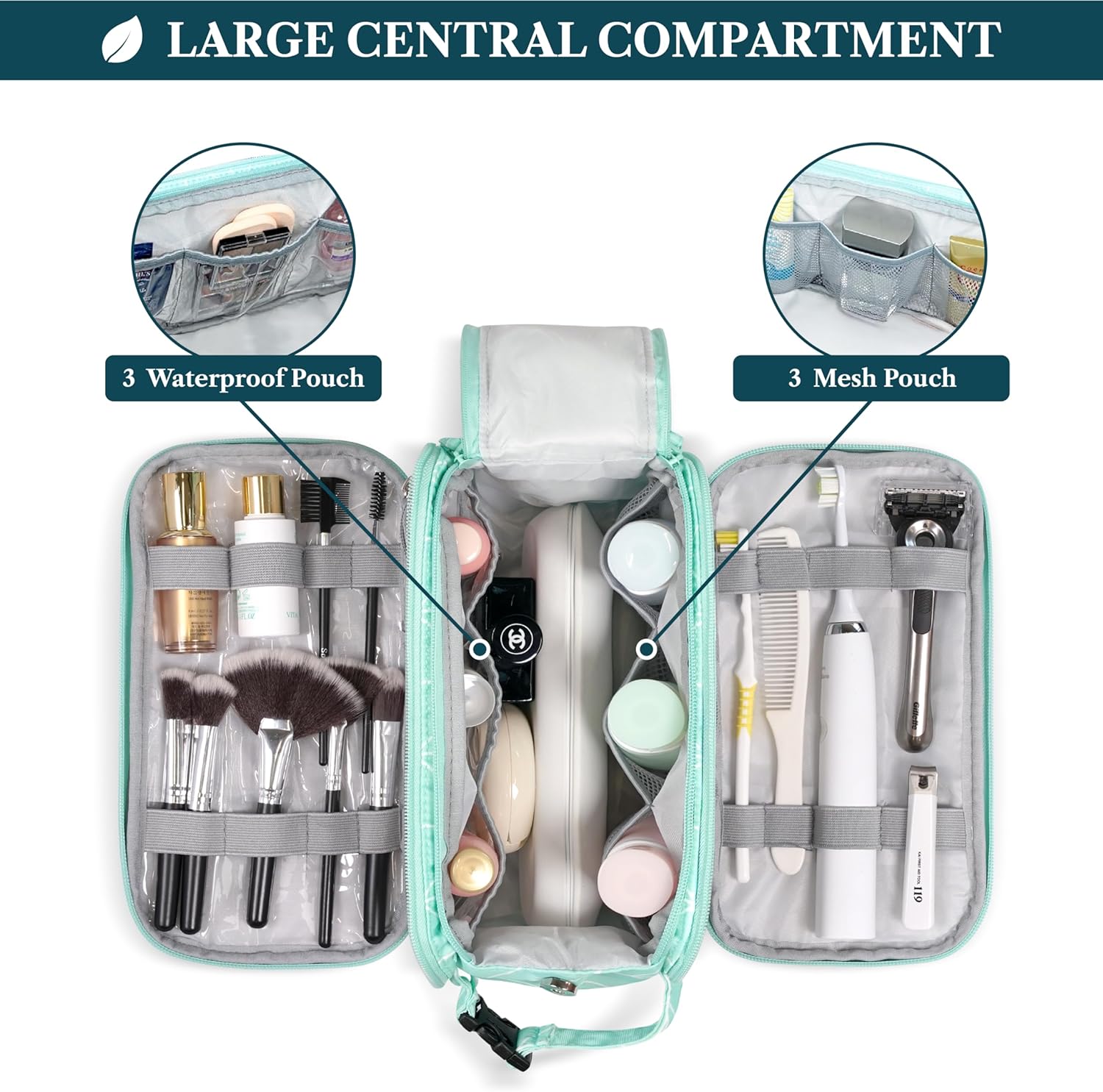 - LARGE OPENING TOILETRIES TRAVEL BAG: This toiletry bag organizer has double zipper design that allows for easy access to the large main compartment. With one simple pull on the handle, you can easily access key accessories such as shaving kit, tooth brush, and shampoo. This toiletry travel bag has the convenient design that helps you stay organized and makes this travel bag case an essentials during any traveling, flights, hotel stay, and weekend vacation.