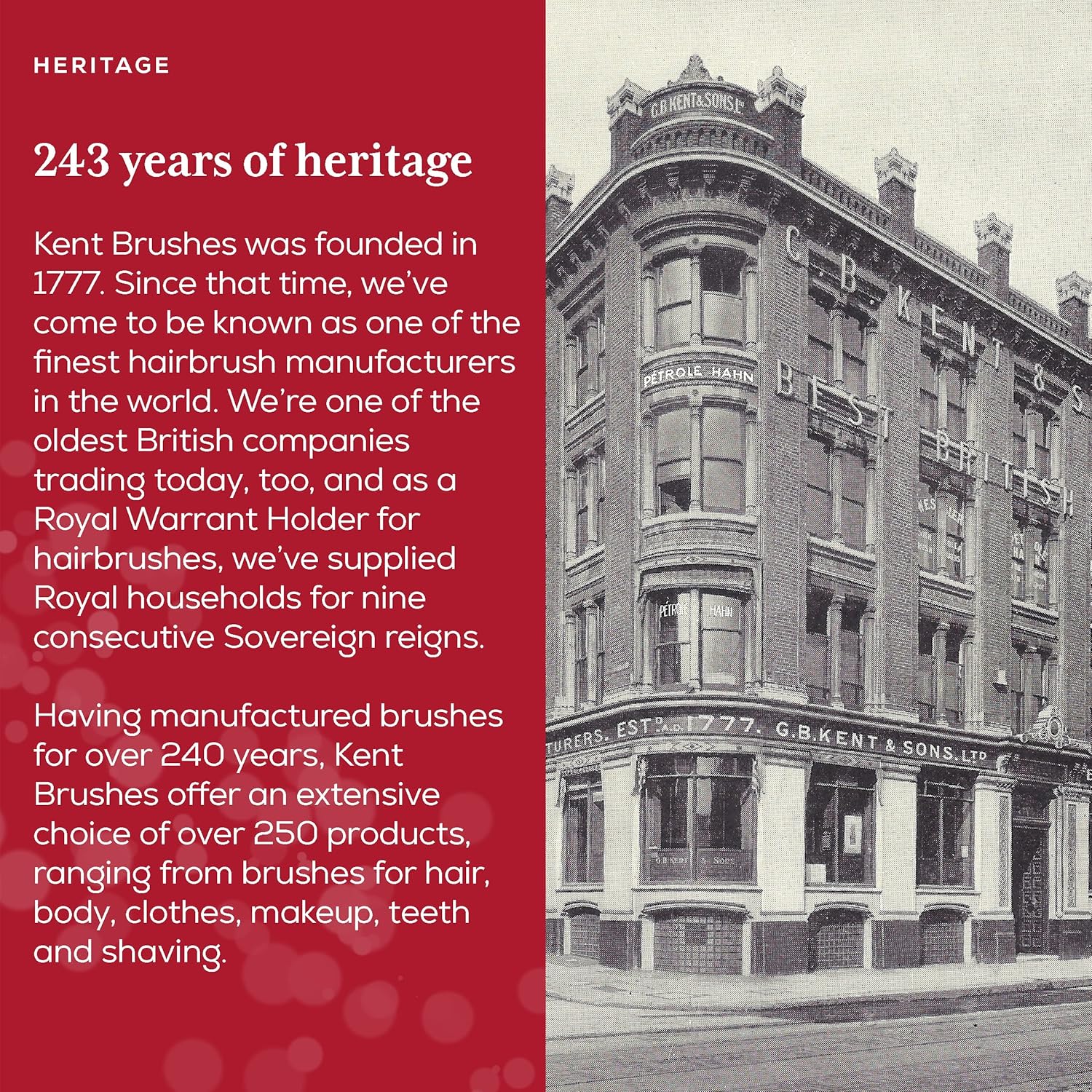 - Kent is the world's oldest brush manufacturer, proudly displaying the Royal Warrant of the Queen since 1777. Today, Kent retains the craftsmanship and unprecedented quality that is their reputation.