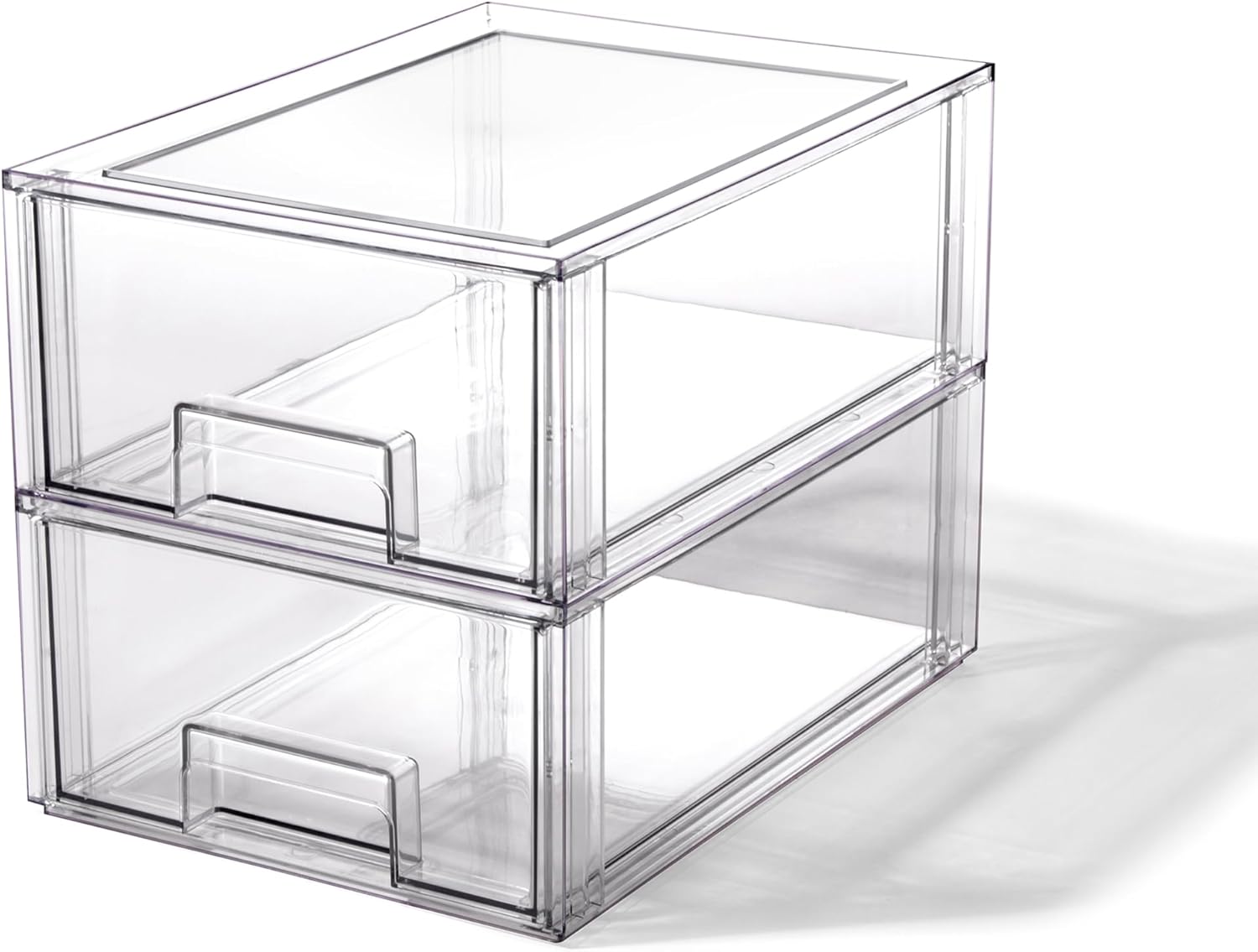 BINO | Stackable Storage Drawers, Large - 2 Pack, Clear | THE CRATE COLLECTION | Storage Bins With Drawers | Bathroom Organizers | Under Sink Organizer | Vanity Cabinet Home Organization