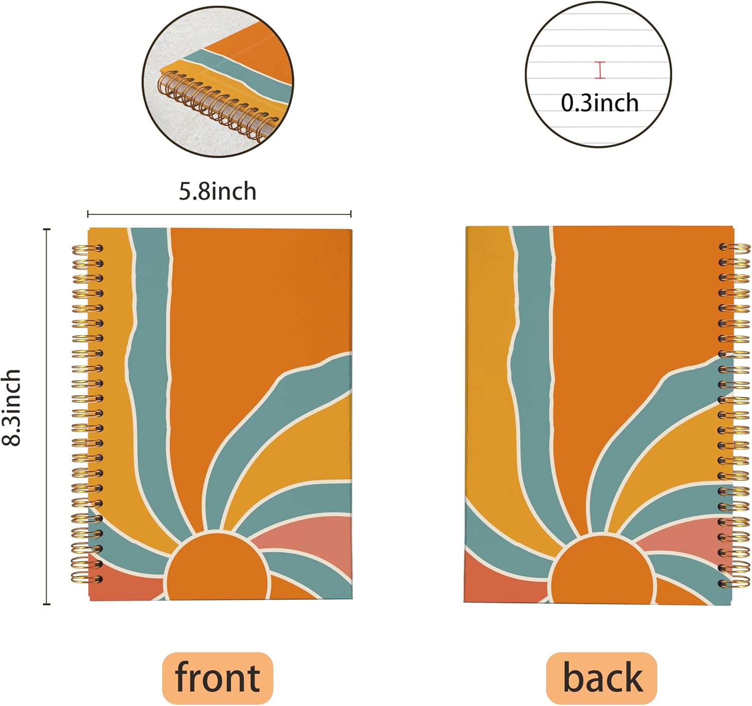 VNWEK Boho Notebook - Boho Journal, Boho Gifts for Women, Boho Office Supplies, Groovy Boho Sun Sunshine Spiral Notebook 5.5x8.3,Writing Notebooks
