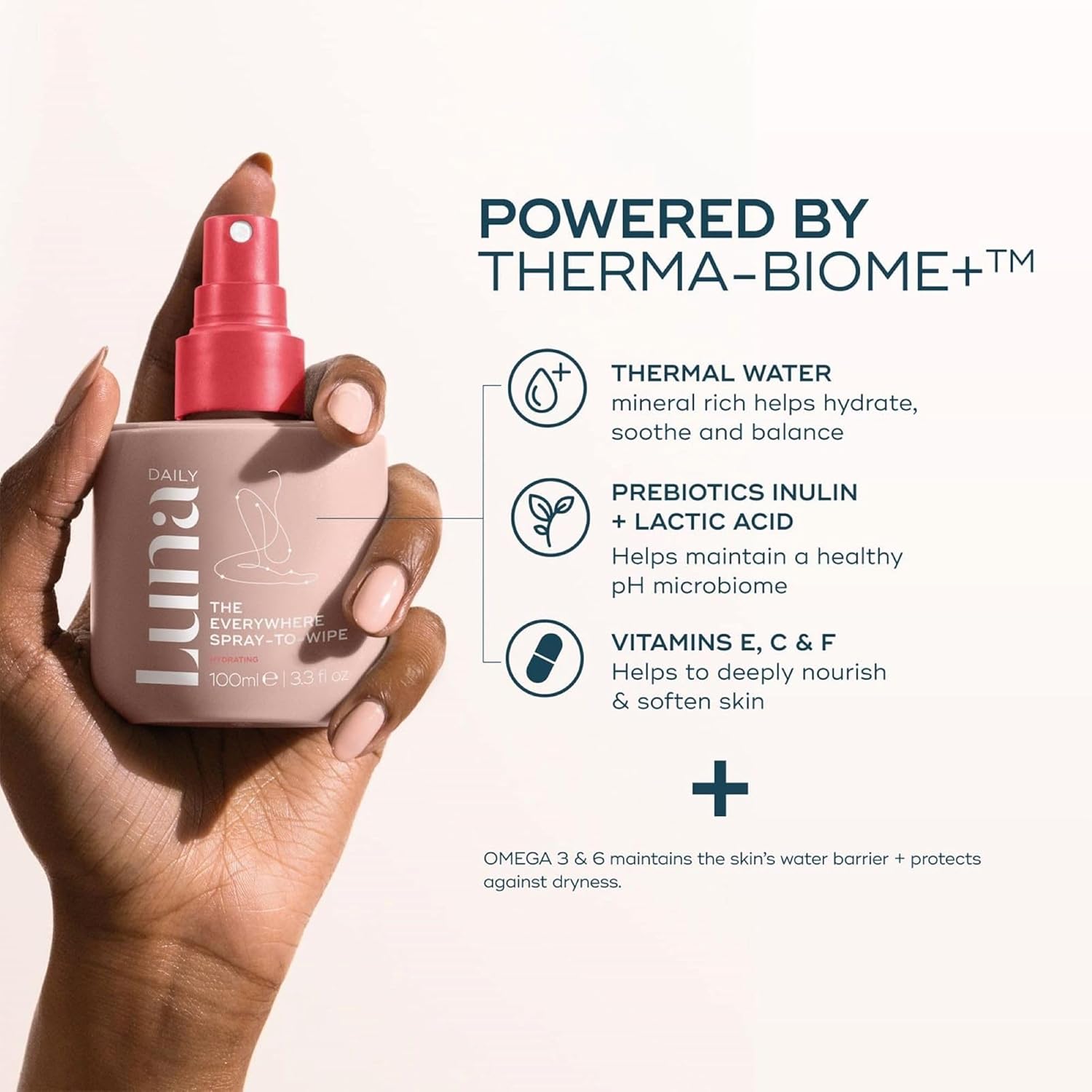 Luna Daily Body Cleansing Spray | Hydrating Feminine & Body Mist with Soft Cotton Scent | pH-Balanced, Gentle & Moisturizing | For Intimate Care, Underarms & Travel Freshness, 100ml