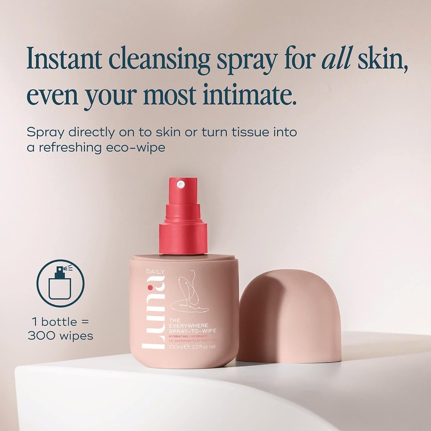 - INSTANT ECO-FRIENDLY WIPES: Spray directly onto skin or onto a tissue to create an instant eco-friendly, compostable, and flushable wipe. Use on intimate areas and all over the body. Flush or recycle tissue.