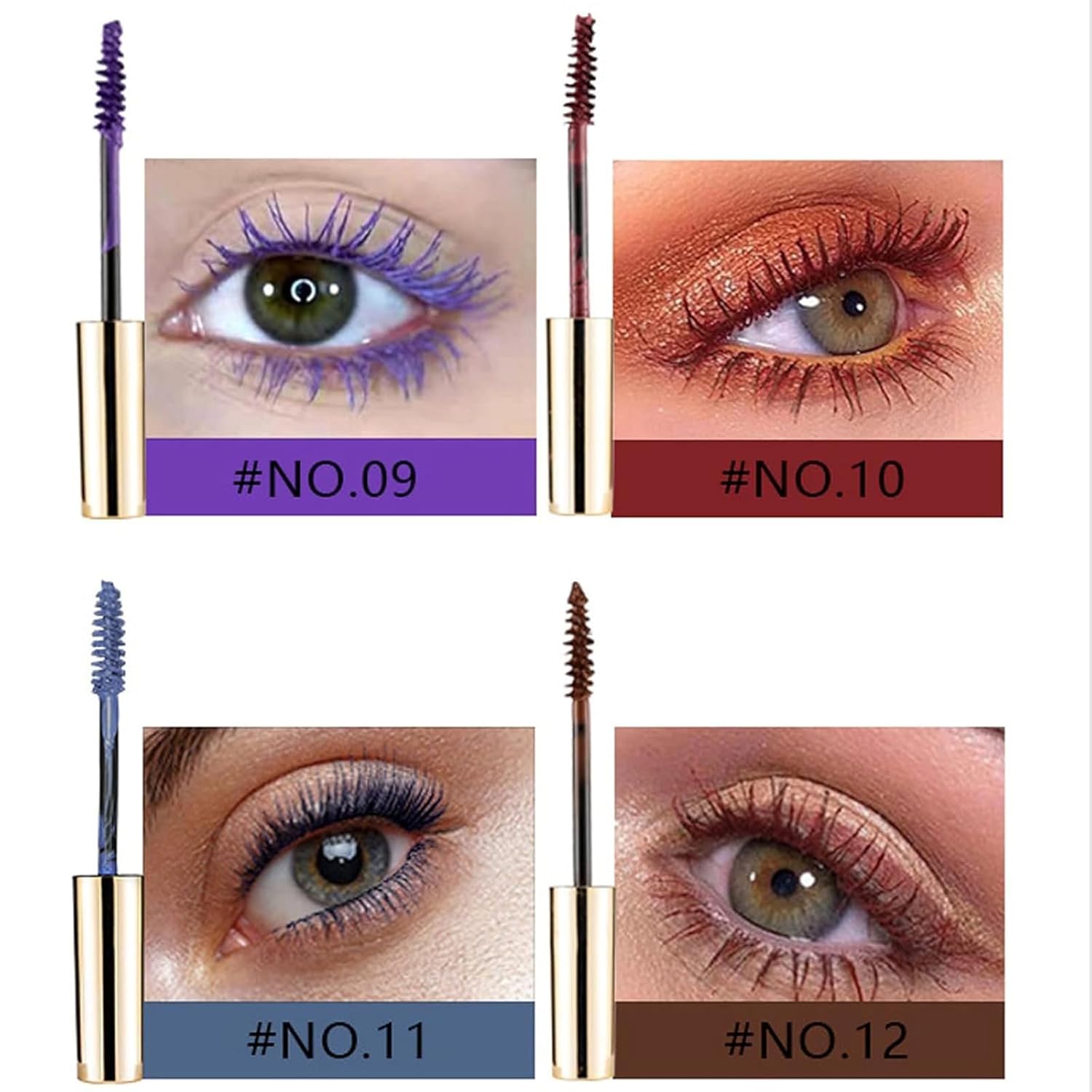 Colored Mascara Sets - 12 Waterproof Colors, Pink, Purple, Blue, White, Black Voluminous & Long Lasting Gift Set