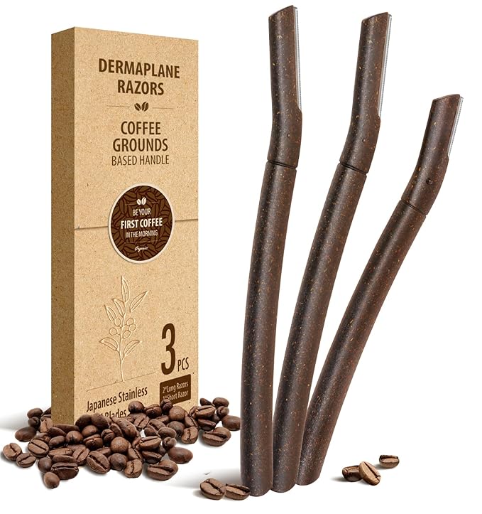SINAHET Dermaplane Razor for Face, (3 Count) Professional Dermaplaning Tool with Coffee Grounds Based Handle, Facial and Eyebrow Hair Removal