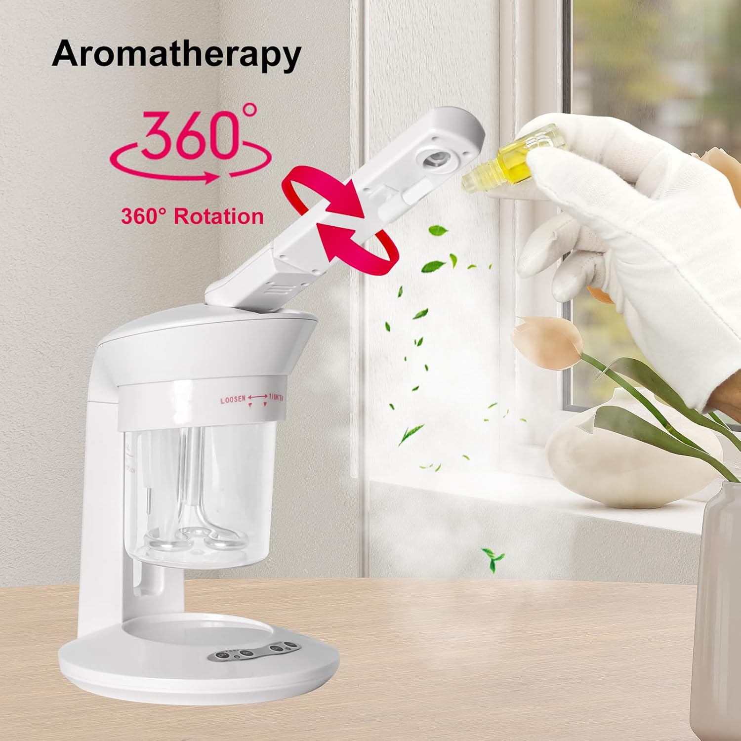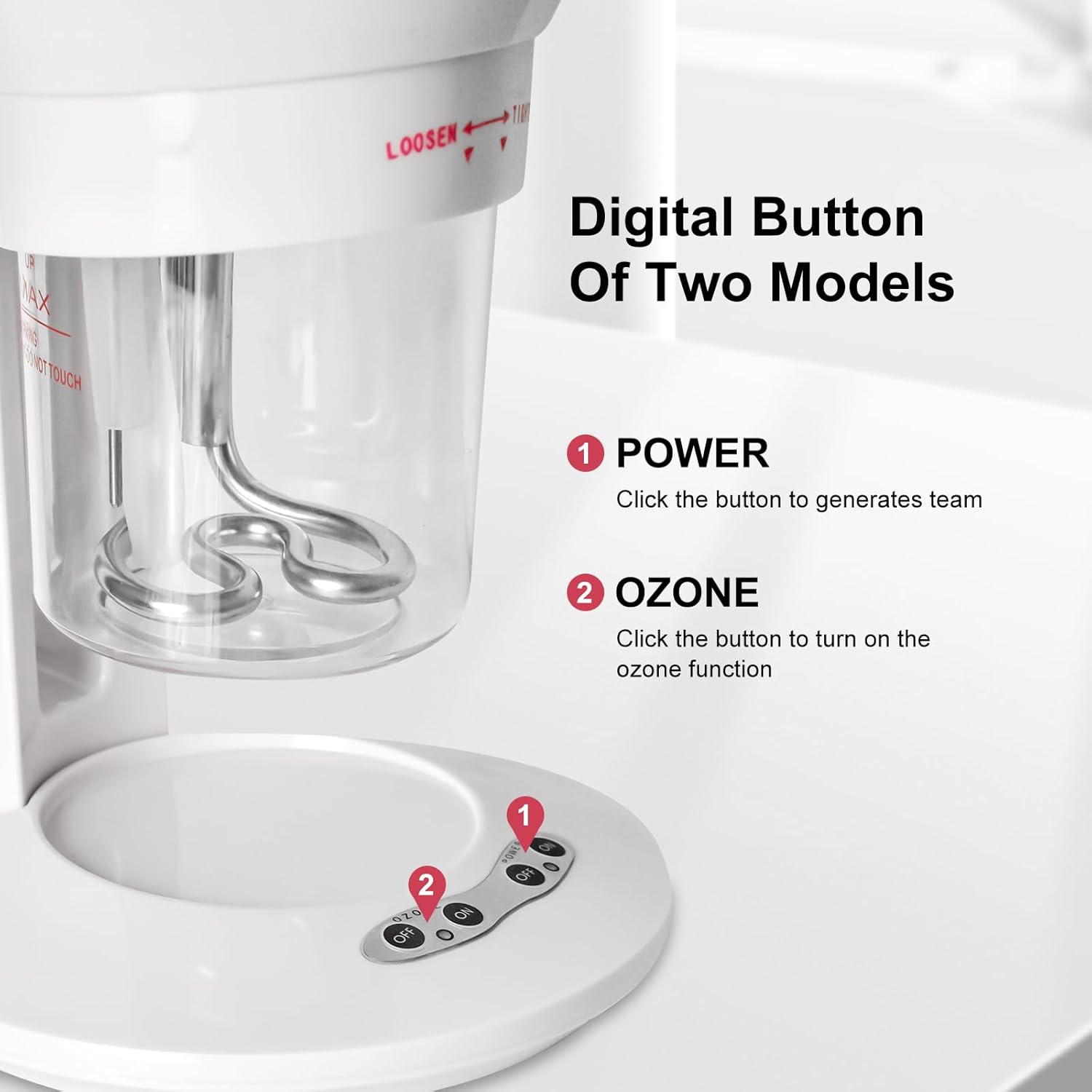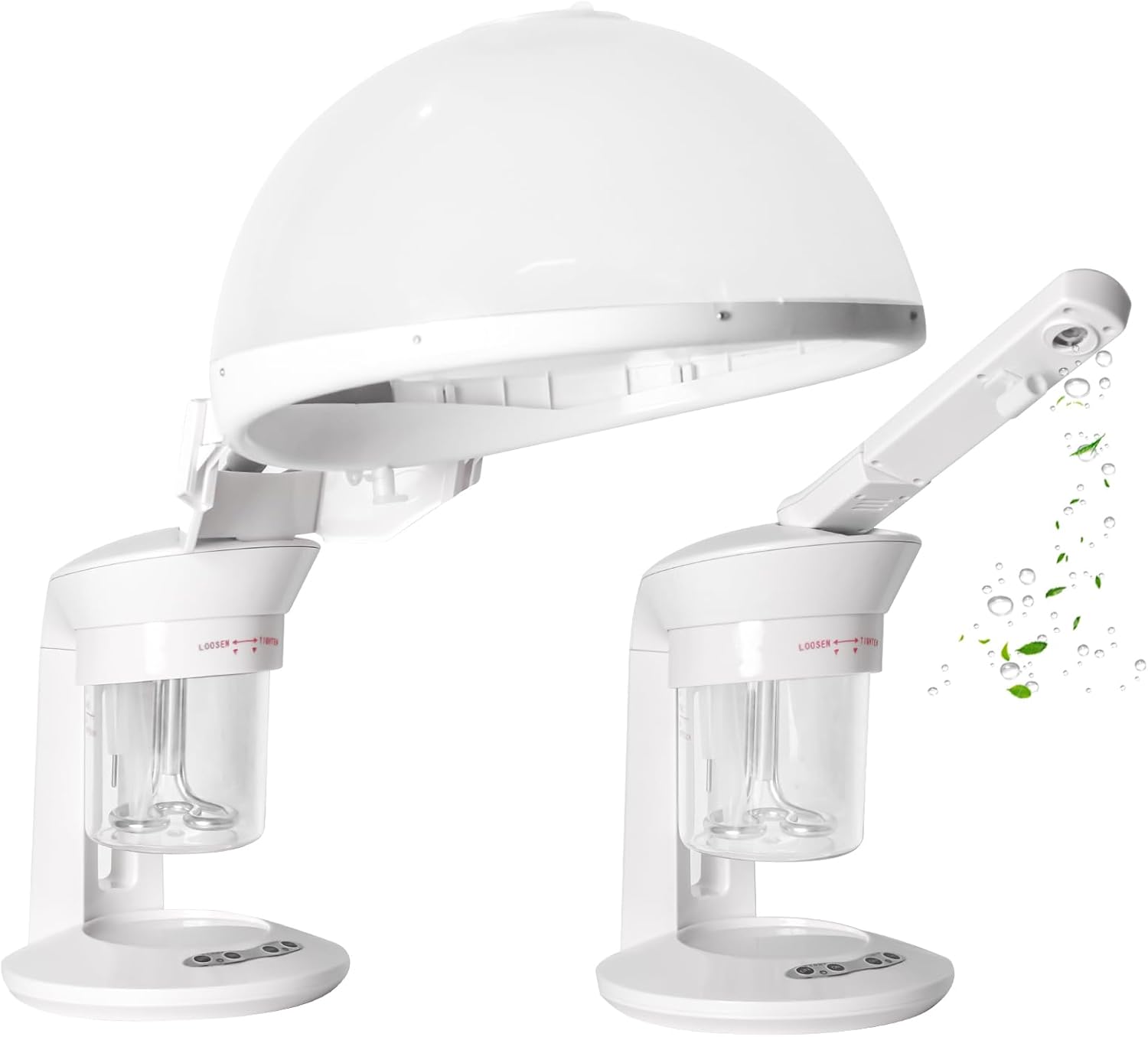 - 2-IN-1 TABLE TOP DESIGN (HAIR, FACIAL, AND HUMIDIFIER) - This hair and facial steamer for home use is a hair and facial care unit that can be used as a hair steamer to treat brittle and damaged hair, a facial steamer to treat pores and dry skin, or a humidifier to improve the air quality in your space. Its compact and convenient table top design makes it perfect for personal care at home or in salon spa center.