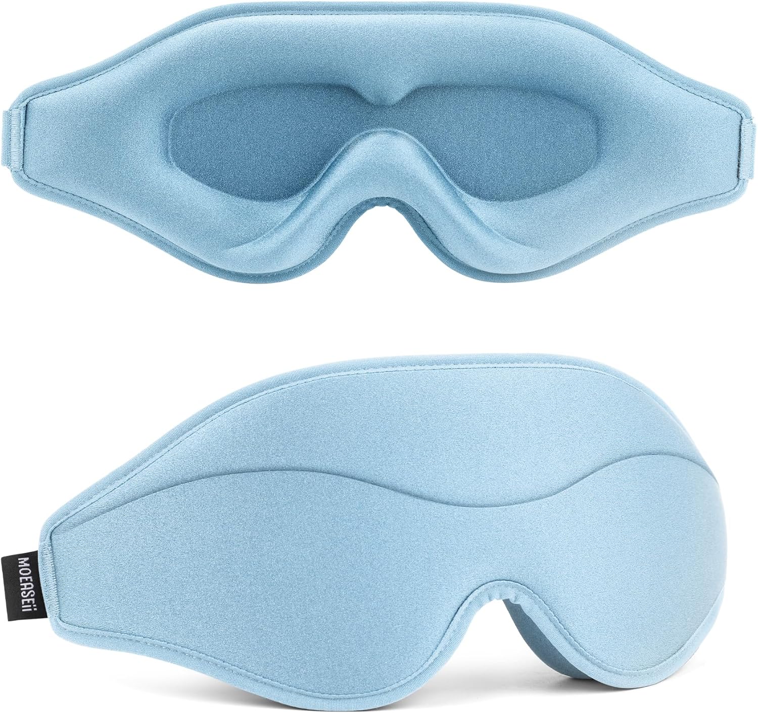 Sleep Mask - Total Blackout 3D Sleeping Mask, Super Lightweight & Silky Soft Eye Mask for Sleeping, Fully Adjustable Fit for Home, Office, Traveling, Meditation, Yoga, Light Blue