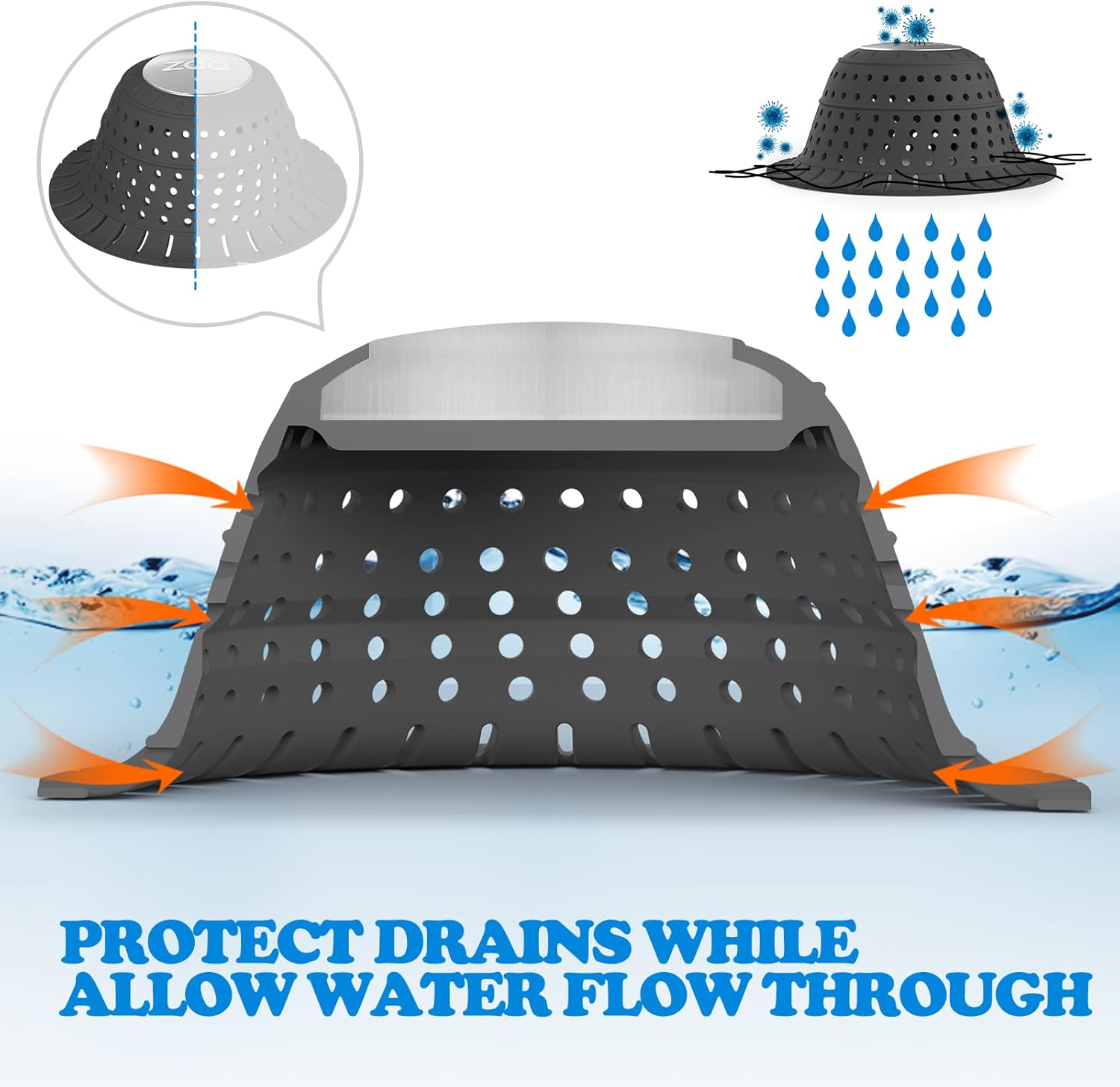 - 【Drain Protector Expert】We are professional bathroom essential manufacturer, we provide quality and affordable household cleaning products for more families. Our 2 Pack silicone collapsible bathtub drain catcher are upgraded to catch hair more effectively while keeping drainage and preventing clogging.