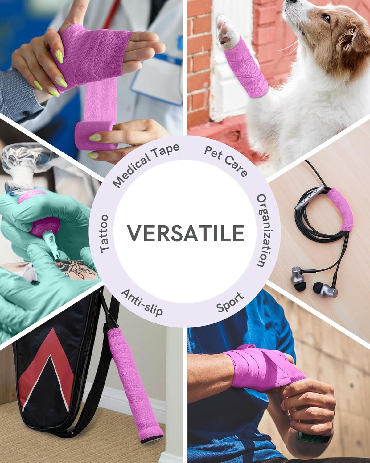 - Soothing Elegance: Discover the soothing appeal of our Fluorescent Purple bandage. This unique shade adds a calming yet vibrant touch to your medical supplies, facilitating quick identification and bringing a gentle elegance to personal or pet care.