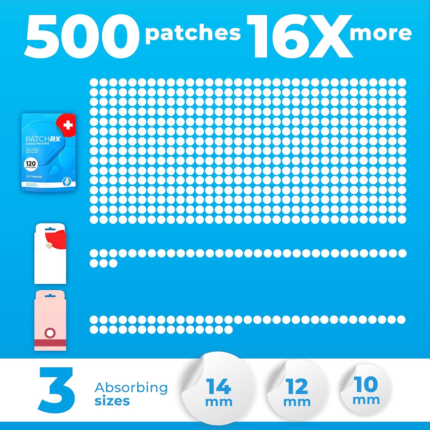 Pimple Patches for Face (500 Patches), Hydrocolloid Acne Patches with Tea Tree Oil, Pimple Patch Pimple Stickers - Hydrocolloid Patch Acne Dots - Acne Pimple Patches For Face - Zit Patches
