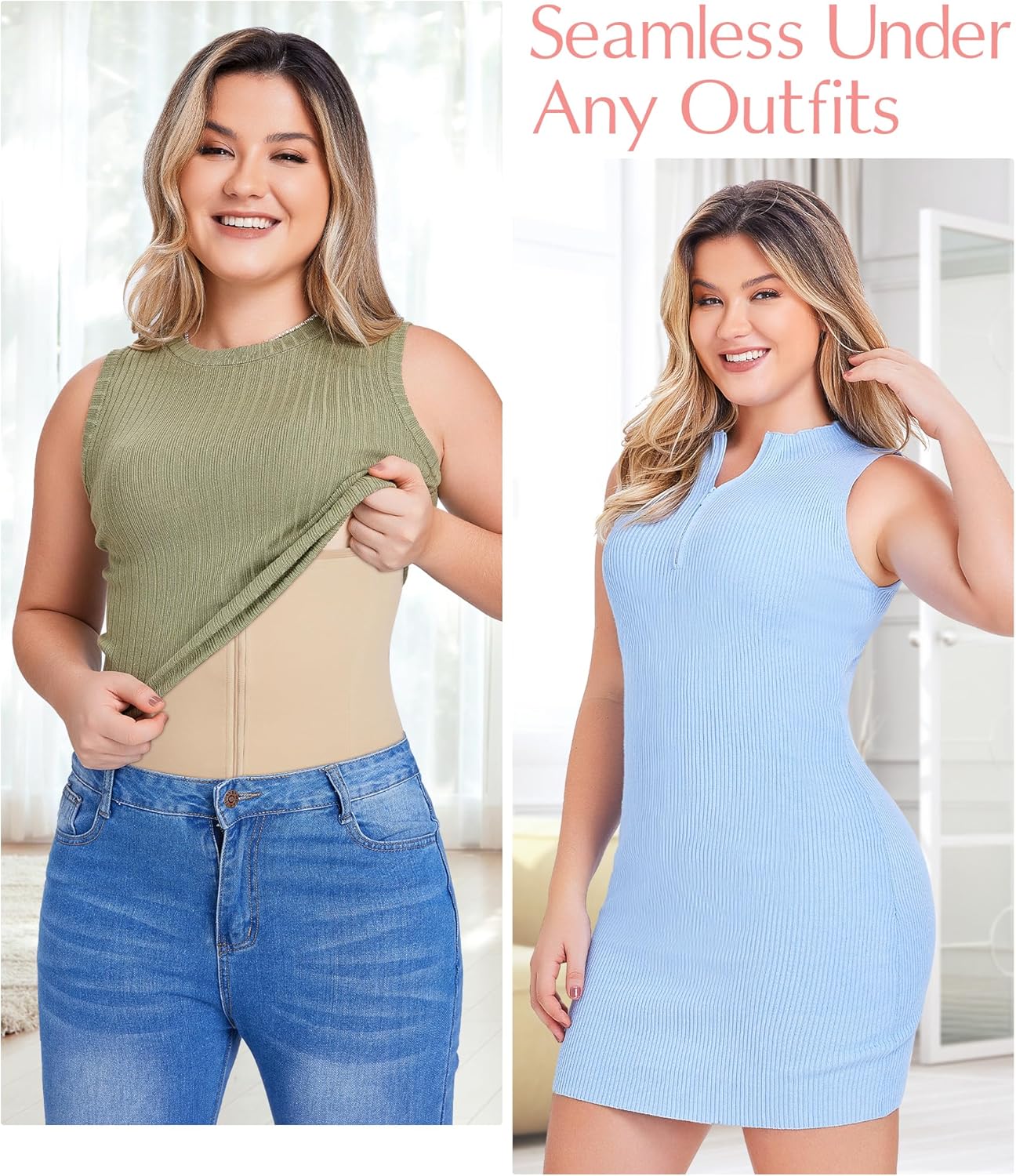 • BREATHABLE PLUS SIZE WAIST TRAINER: Waist cincher shapewear is made of double layer soft, breathable and stretchy nylon & spandex, allowing for flexibility, freedom of movement during various activities. Outer elastic mesh fabric and inner soft fabric, waist shaper for women tummy control ensures a comfortable fit and minimize friction against the skin and fit body curve without excessive tightness. Body shaper for women can perfectly shape a charming figure and restore your confidence.