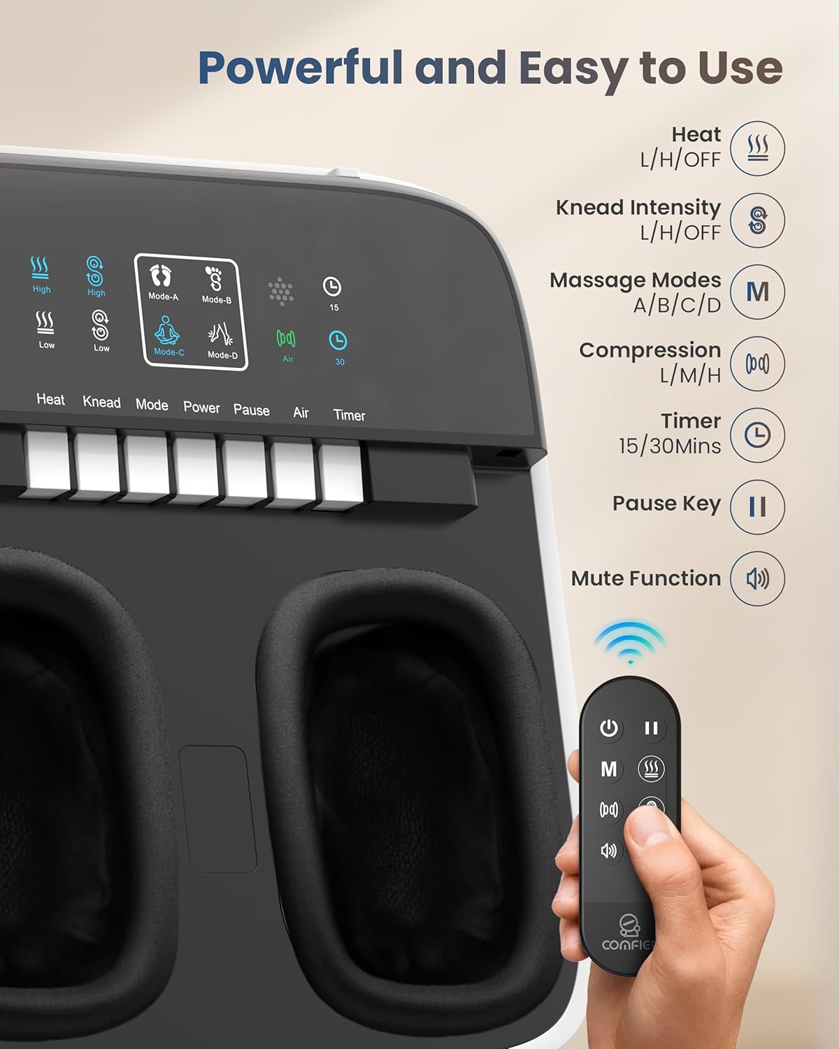 - Diverse Massage Experience: COMFIER foot massager for neuropathy offers 4 automatic massage modes. Additionally, kneading, squeezing, and heating functions of the shiatsu foot massager can be used independently, with 2 levels of kneading, 3 levels of squeezing, and two temperature settings (113°F/131°F), allowing you to customize your massage program according to your different needs and preferences.So COMFIER foot massager is a very warm gift for men and women.