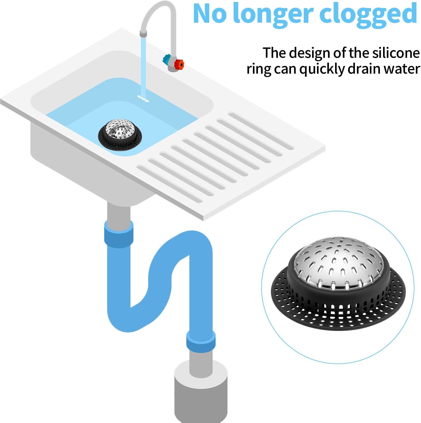 - Upgraded Drain Hair Catcher-Made of rustproof zinc alloy material, which is not easy to rust. The edge of drain catcher is surrounded by non-slip silicone ring, which can catches all the hair and the water still drains out at a good speed!