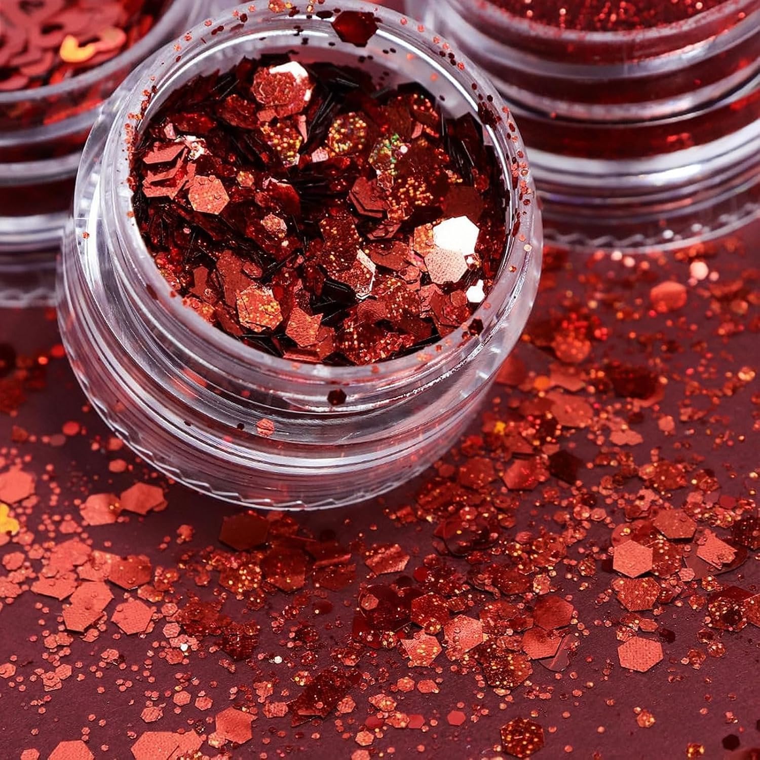 - 【Wide Application】-- 3D holographic red nail sequins is perfect for home use and nail salons. You can also use them to decorate your home, phone cases, books, mirrors, DIY crafts, glasses, cards, body art, fall makeup and more.