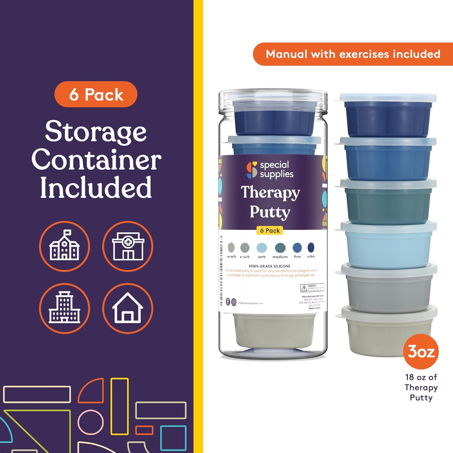 Special Supplies Therapy Putty for Kids and Adults - Resistive Hand Exercise Stress Relief Kit, Set of 6 Strengths, 3 Ounces of Each Putty - Ocean Colors
