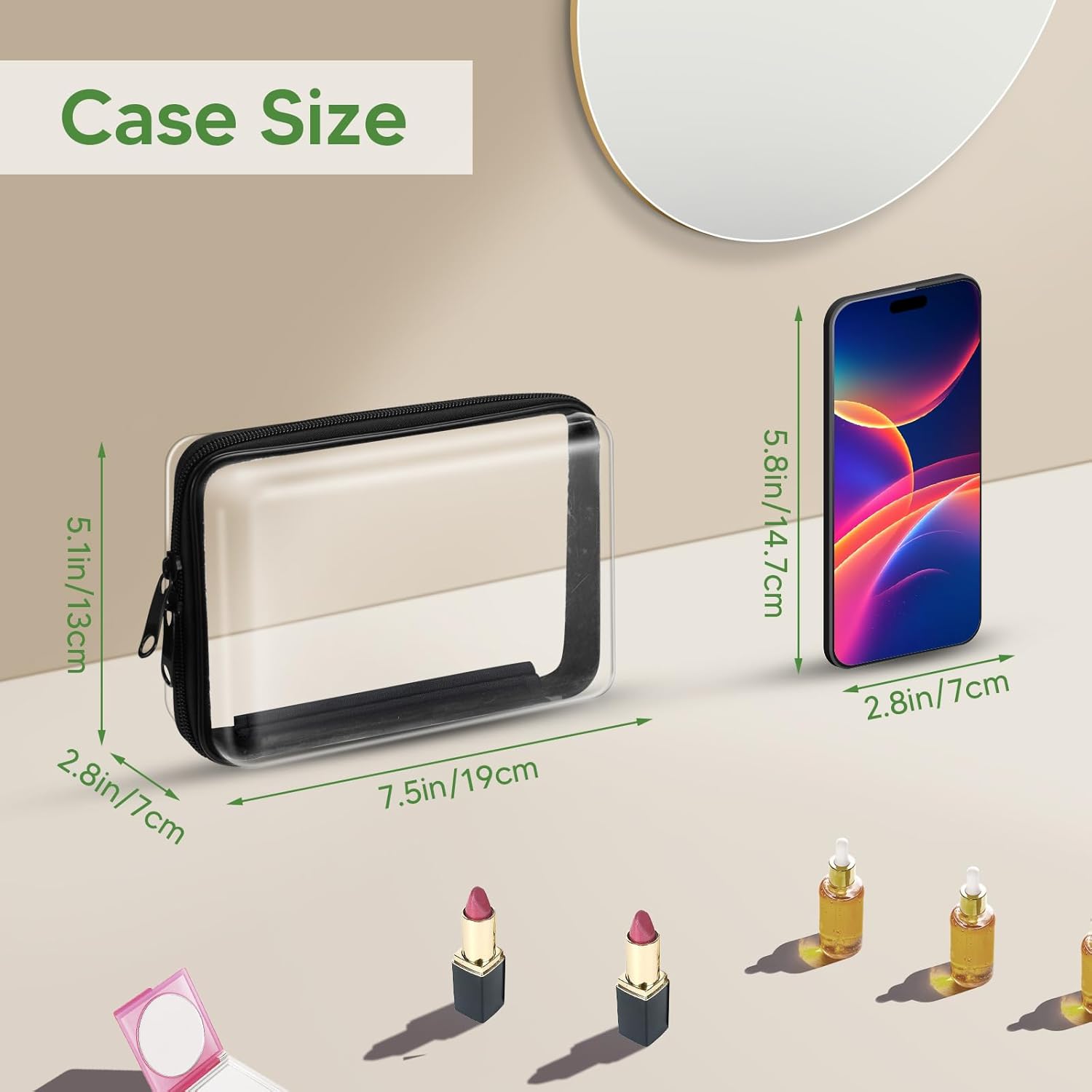 - HIGH QUALITY MATERIALS: The hard shell clear pouch are made from premium hard PC material, ensuring reliability and durability. It is more durable and convenient kit ensures that your travel makeup or toiletries well organized. No longer worry about travel toiletry bag splitting easily and cosmetics spread anywhere!