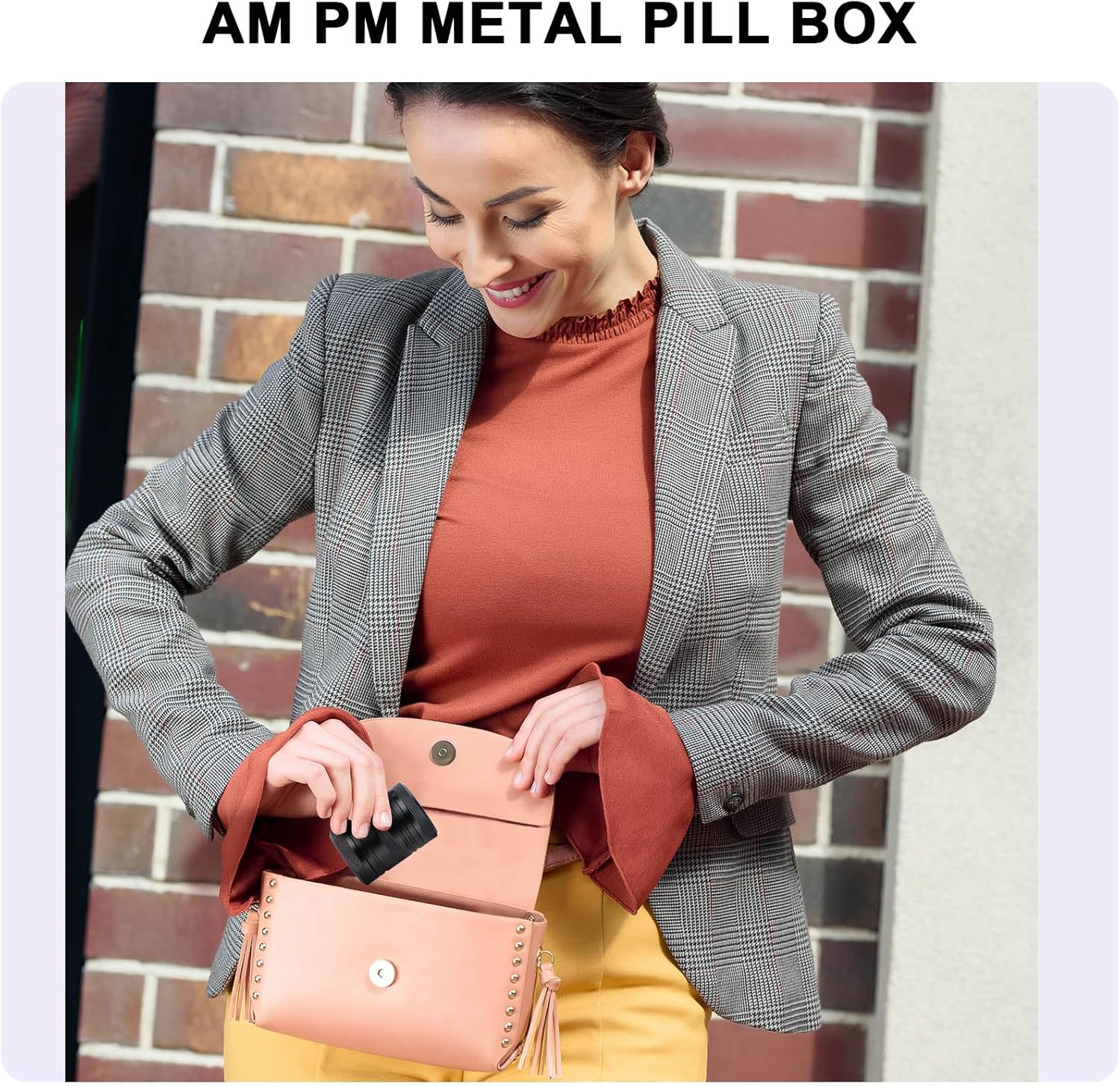 Pill Box 2 Times a Day - Metal Pill Case, Portable Daily 2 Compartment Pill Container, Waterproof Travel Aluminum Pill Holder for Fish Oils, Vitamin, Fish Oil, Supplements